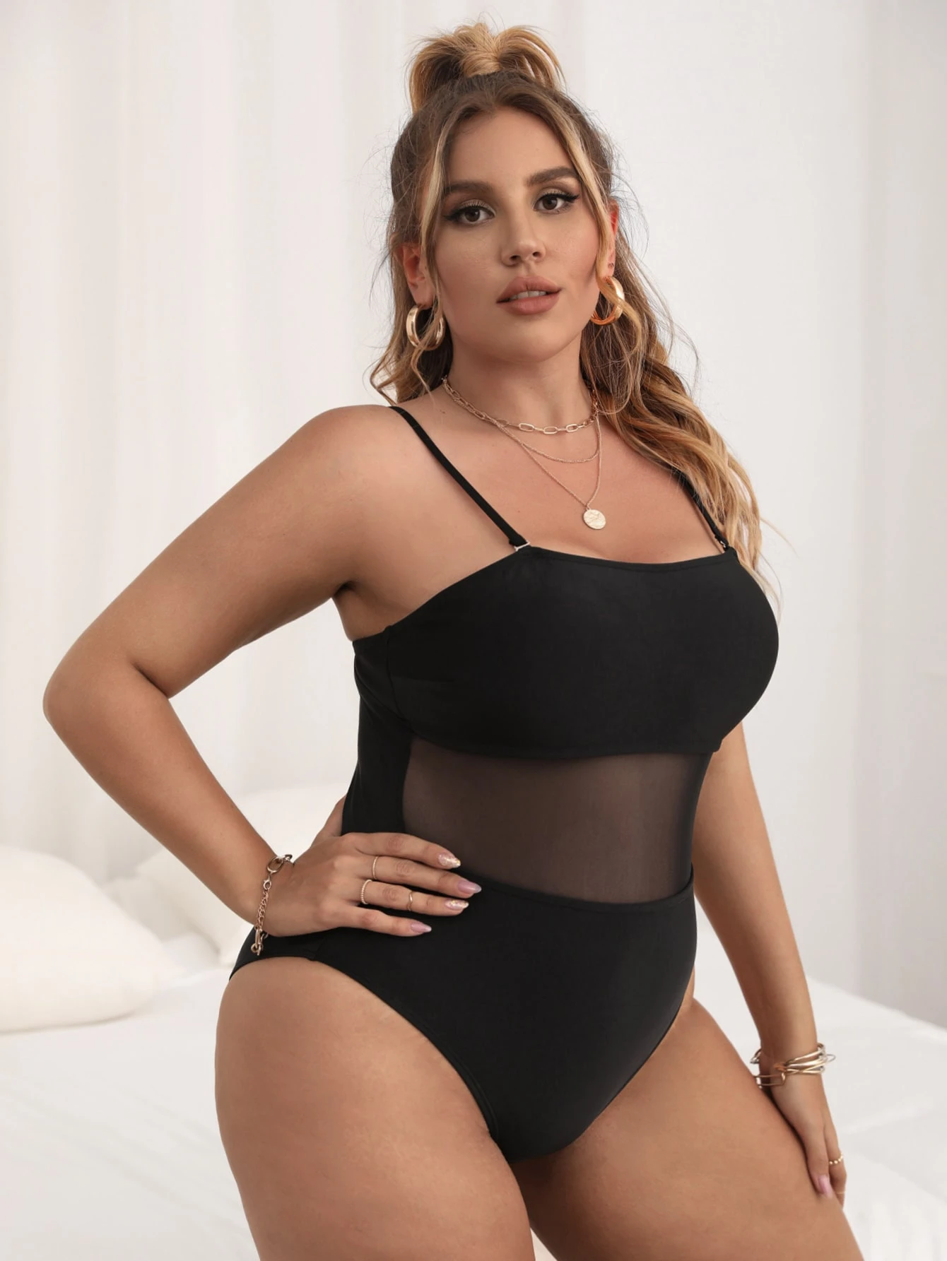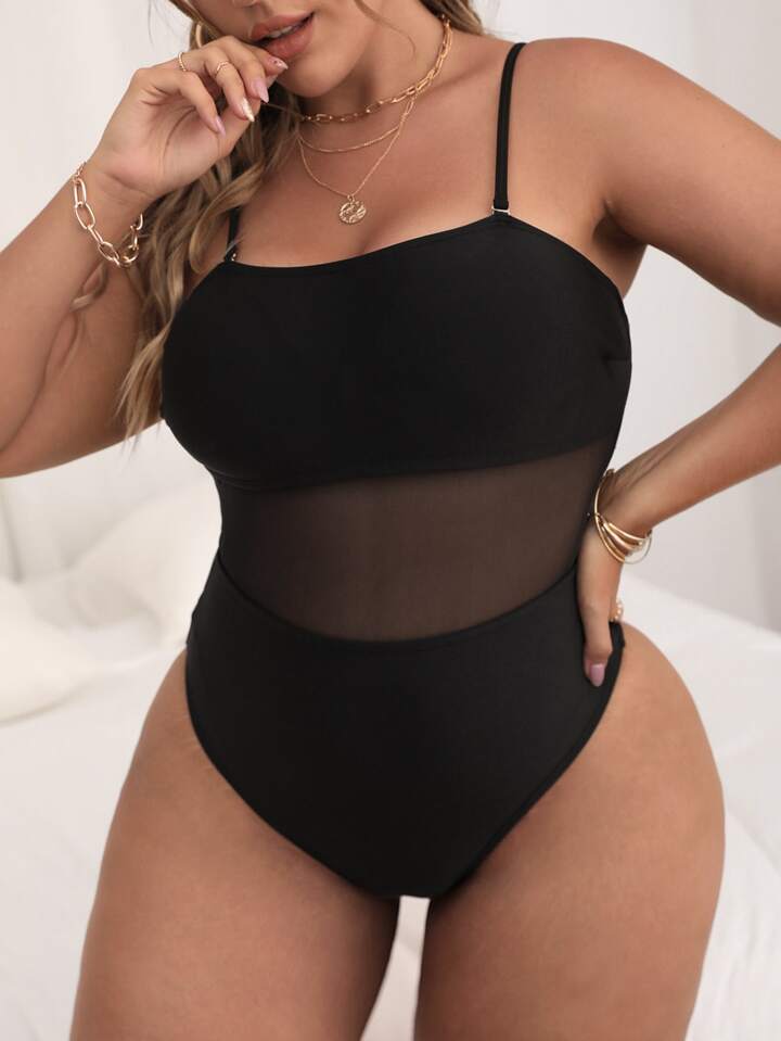 Plus Contrast Mesh One Piece Swimsuit