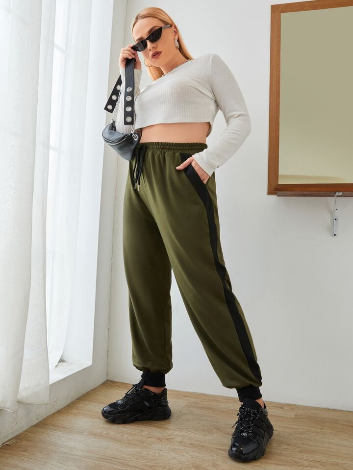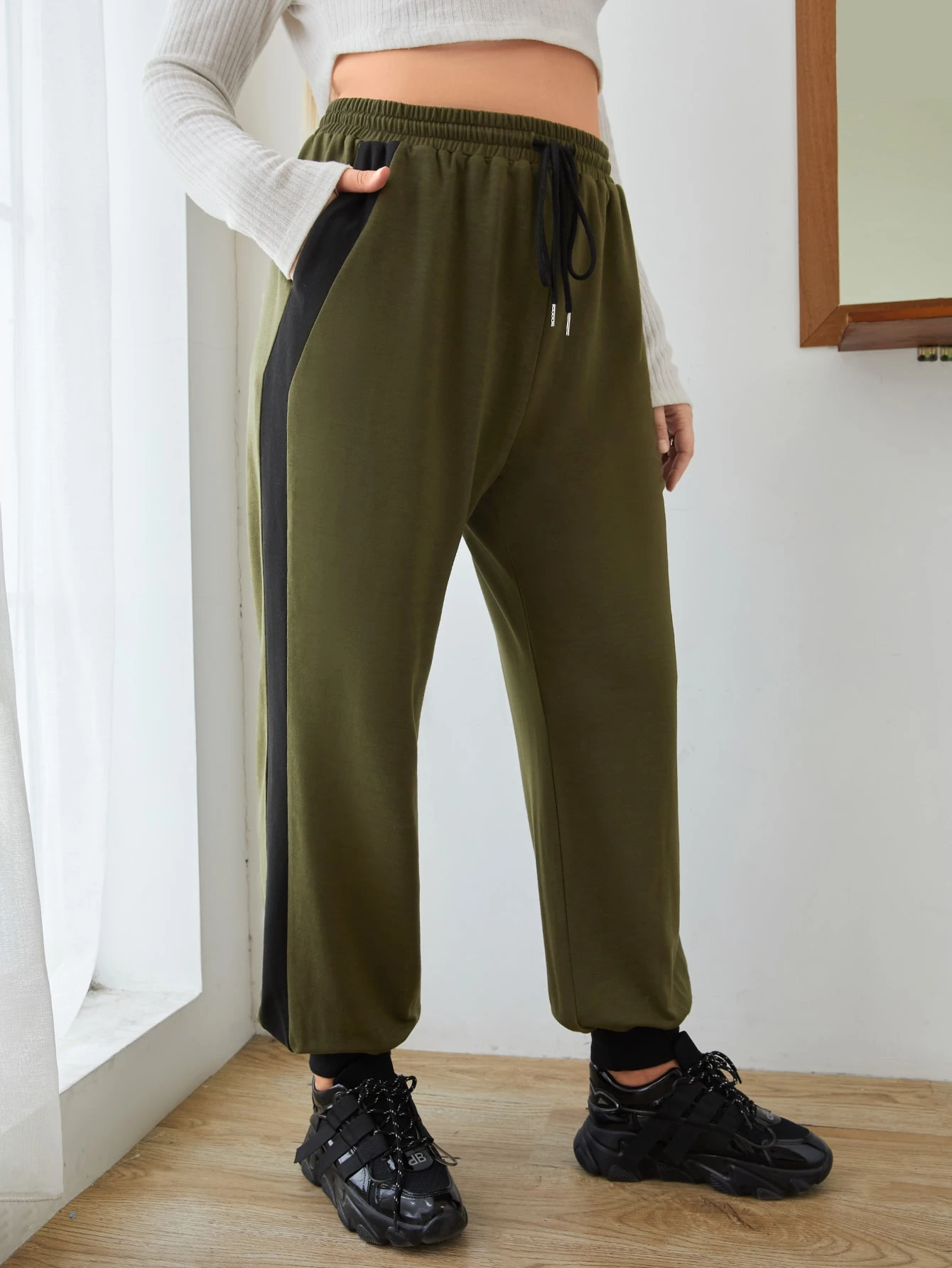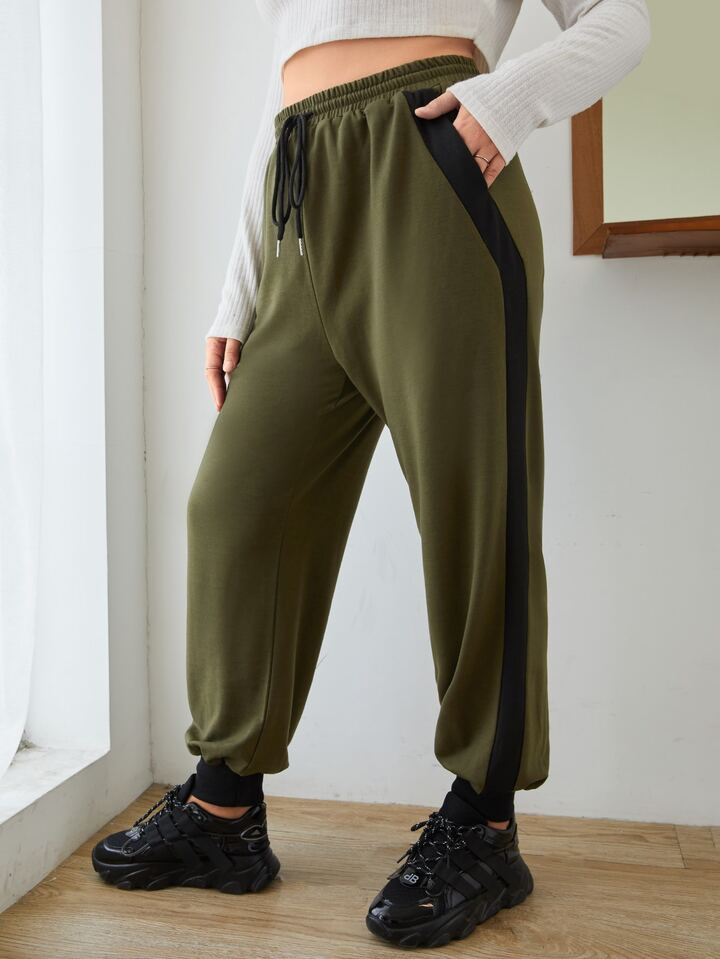 Plus Contrast Side Seam Drawstring Waist Sweatpants