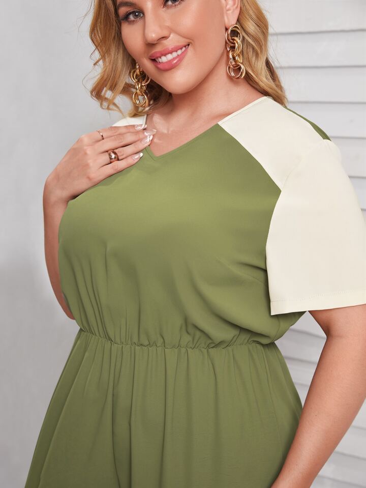 Plus Contrast Sleeve Wide Leg Jumpsuit