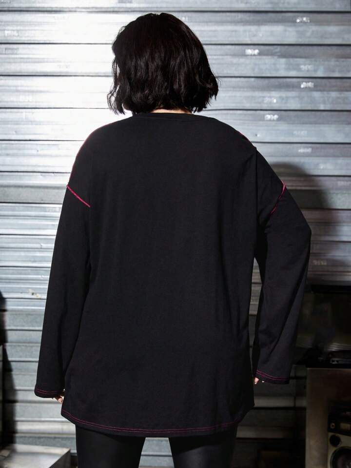 Plus Cross and Letter Graphic Top-stitching Drop Shoulder Tee
