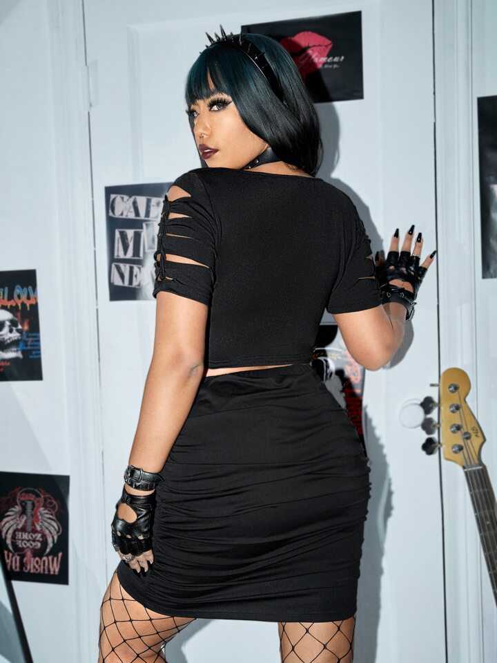 Plus Cut Out Crop Tee & Bodycon Skirt Without Belt