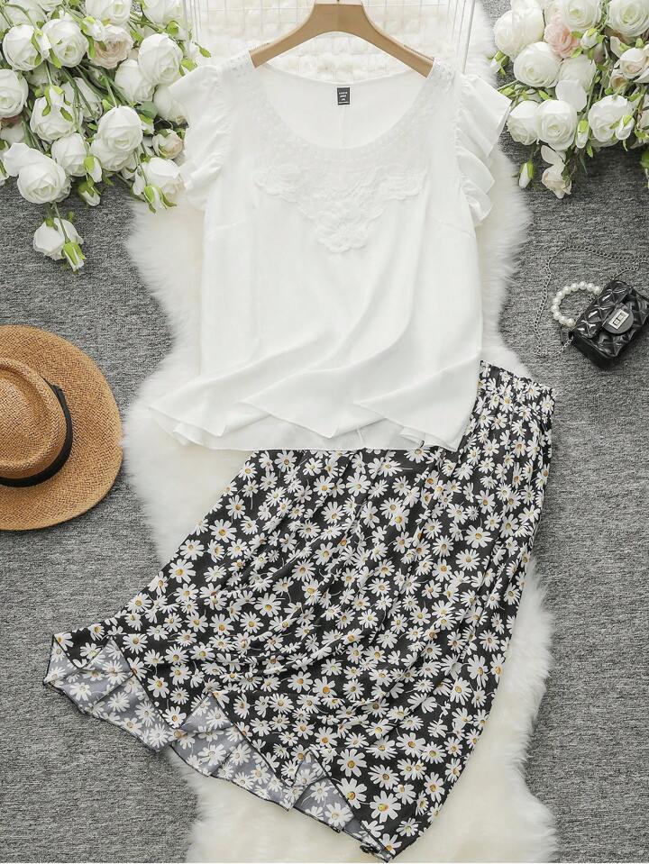 Plus Daisy Floral Midi Flared Skirt