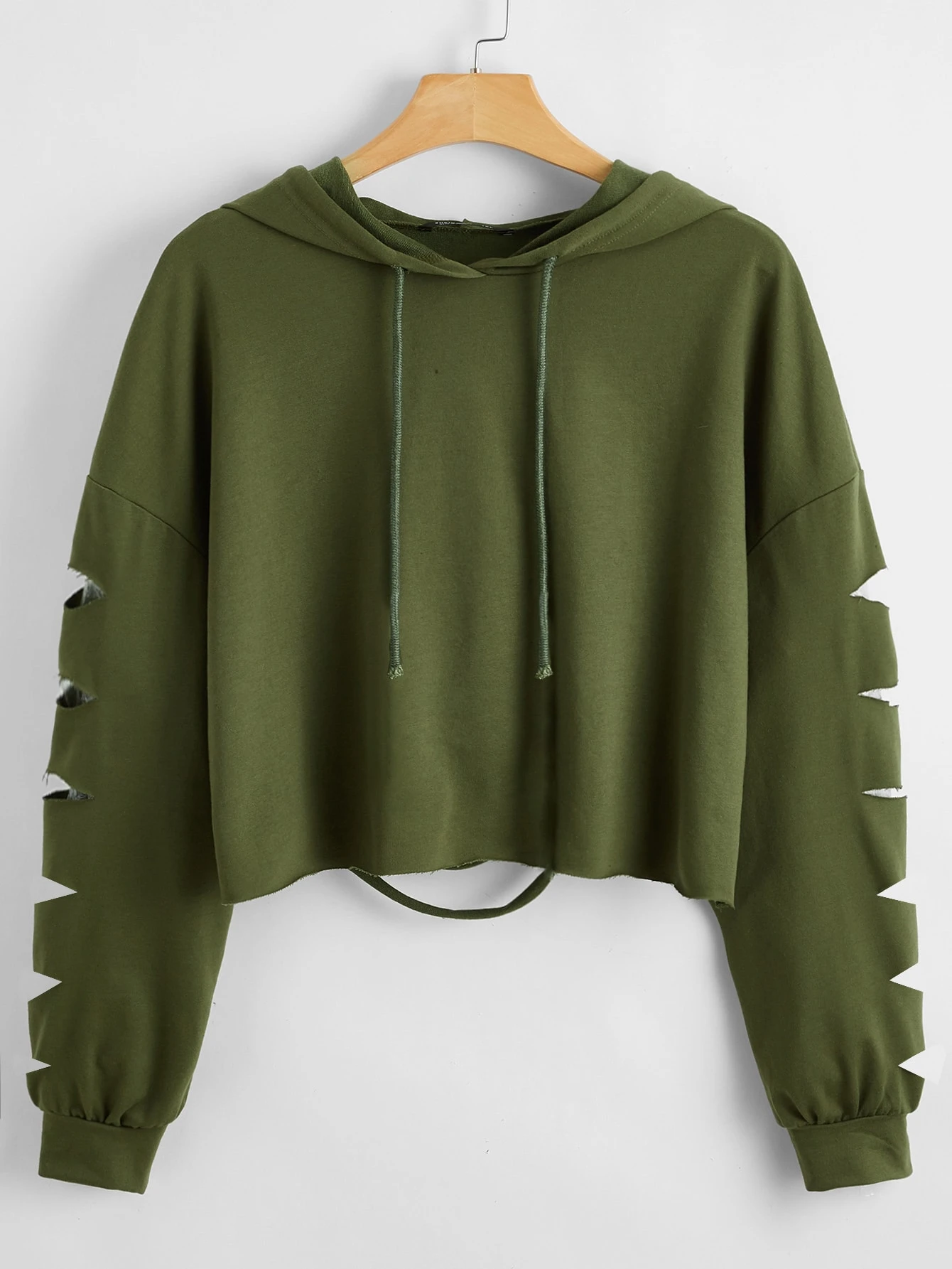 Plus Size Drawstring Detail Ripped Crop Sweatshirt