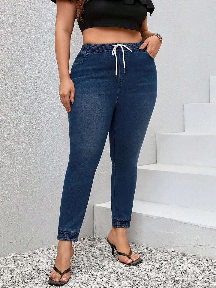 Plus Drawstring Waist Skinny Jeans