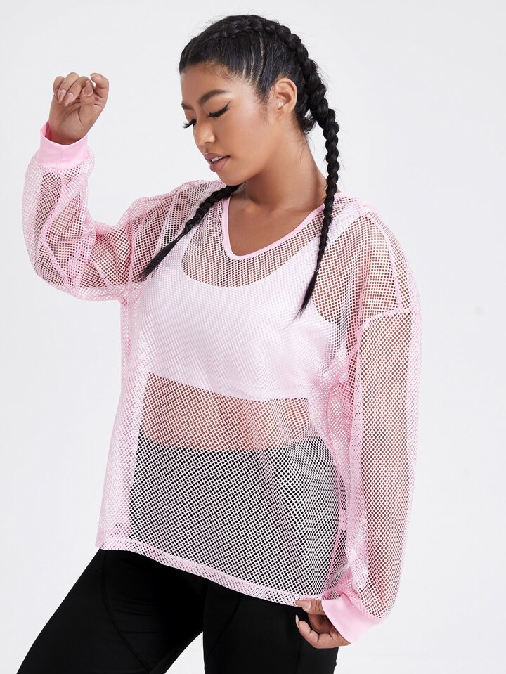 Plus Drop Shoulder Sheer Hooded Sports Top