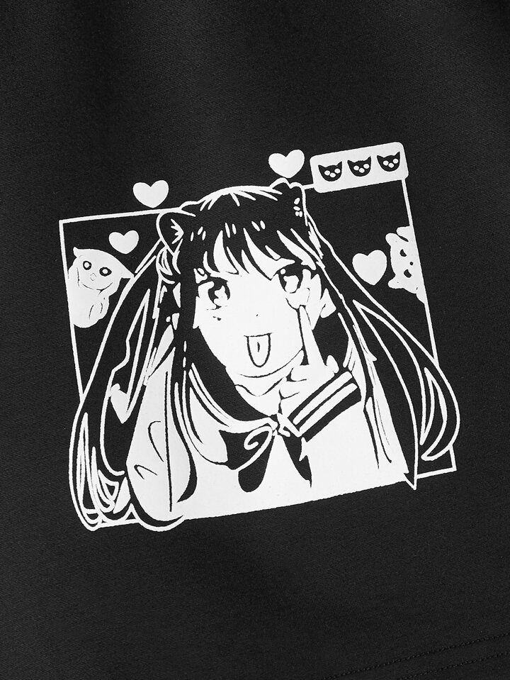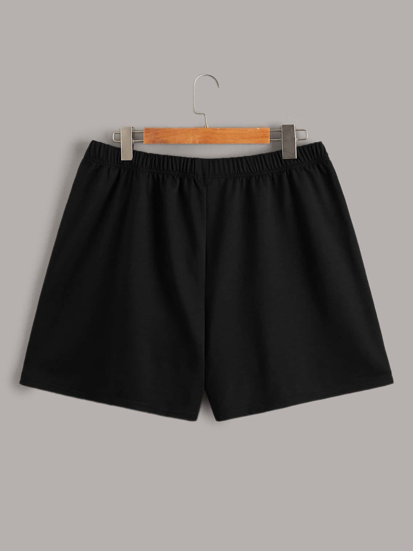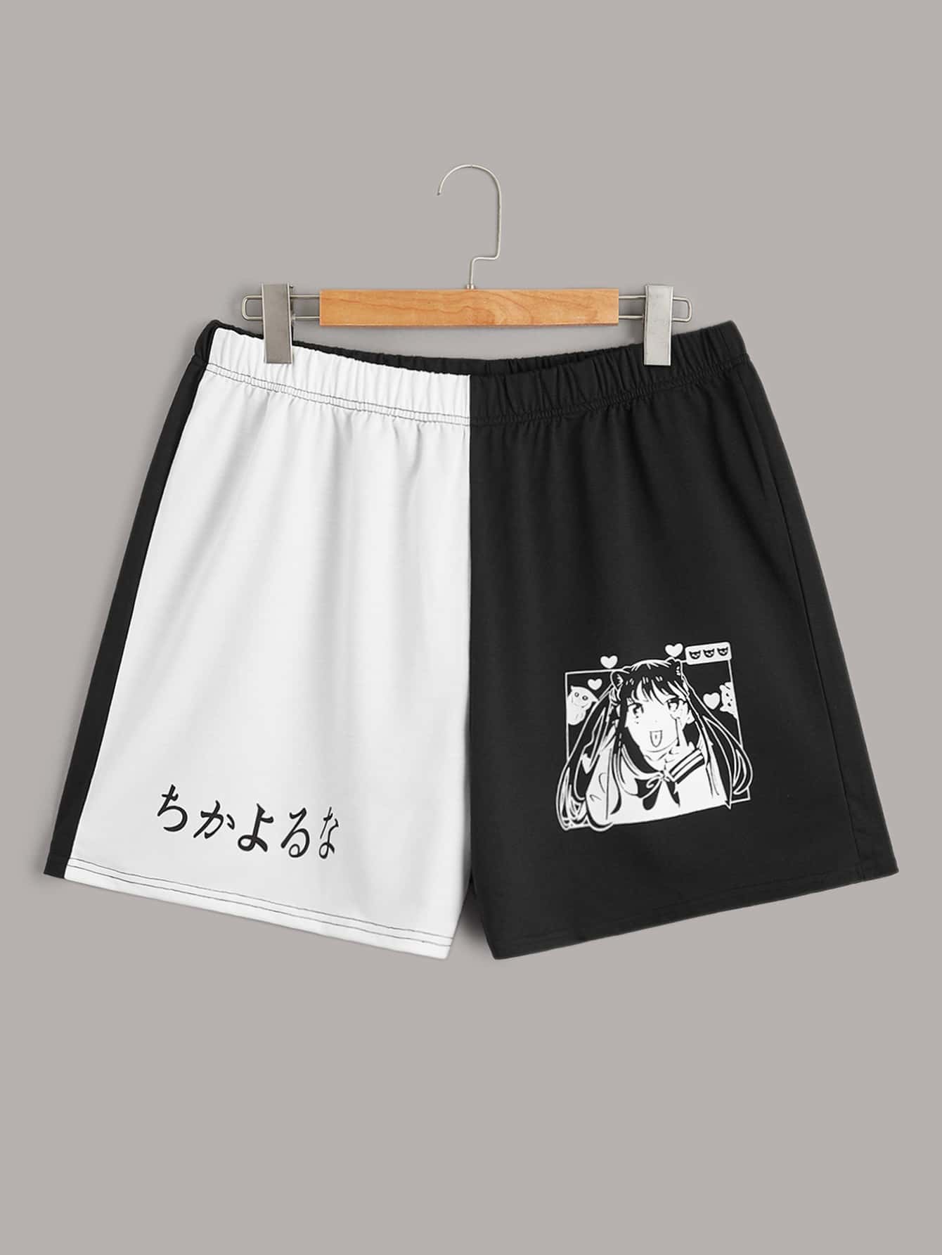 Plus Figure & Japanese Letter Graphic Two Tone Shorts