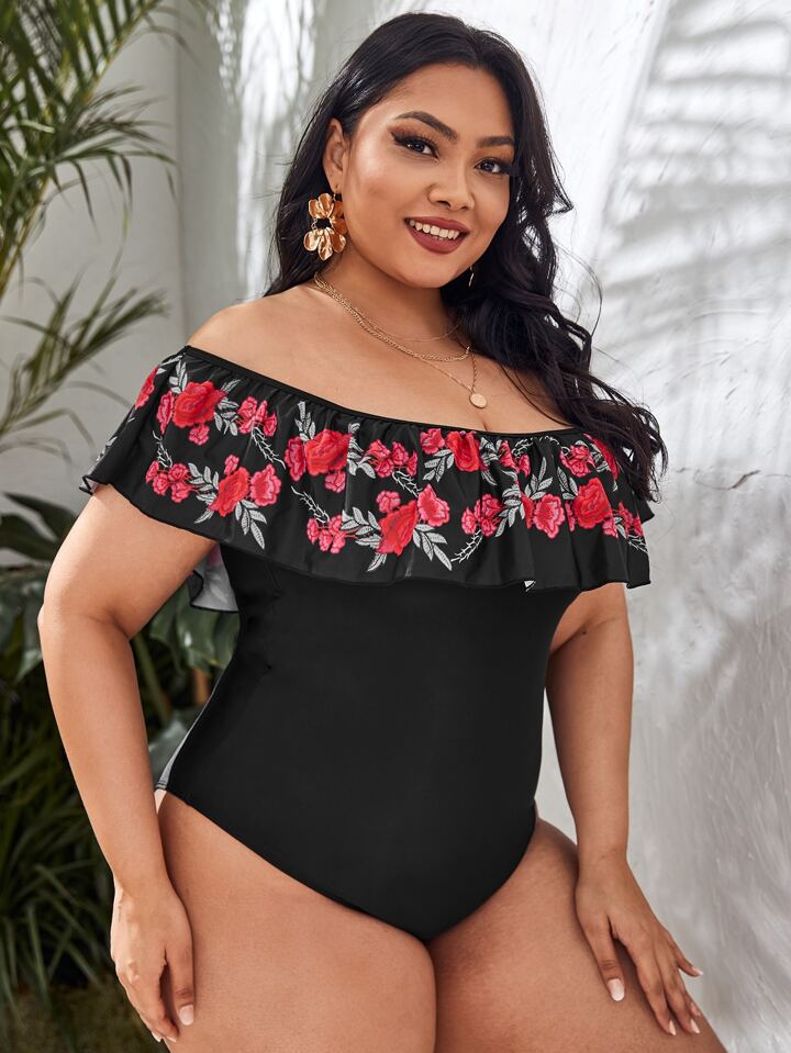 Plus Floral Graphic Flounce One Piece Swimsuit