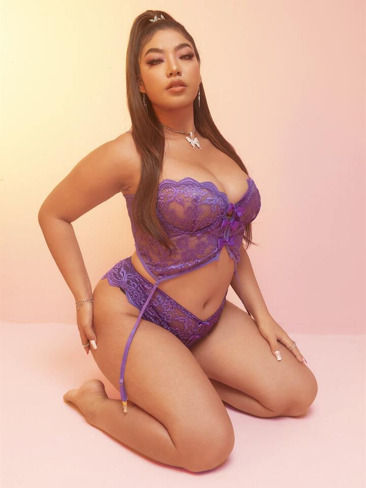 Plus Floral Lace Bow Front Underwire Garter Lingerie Set
