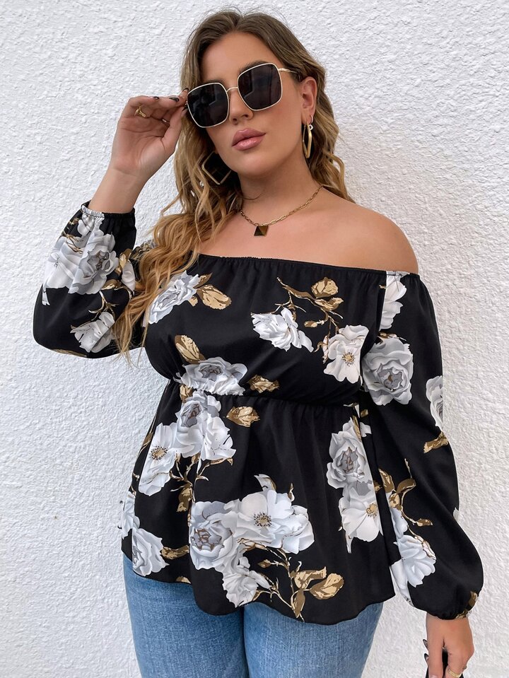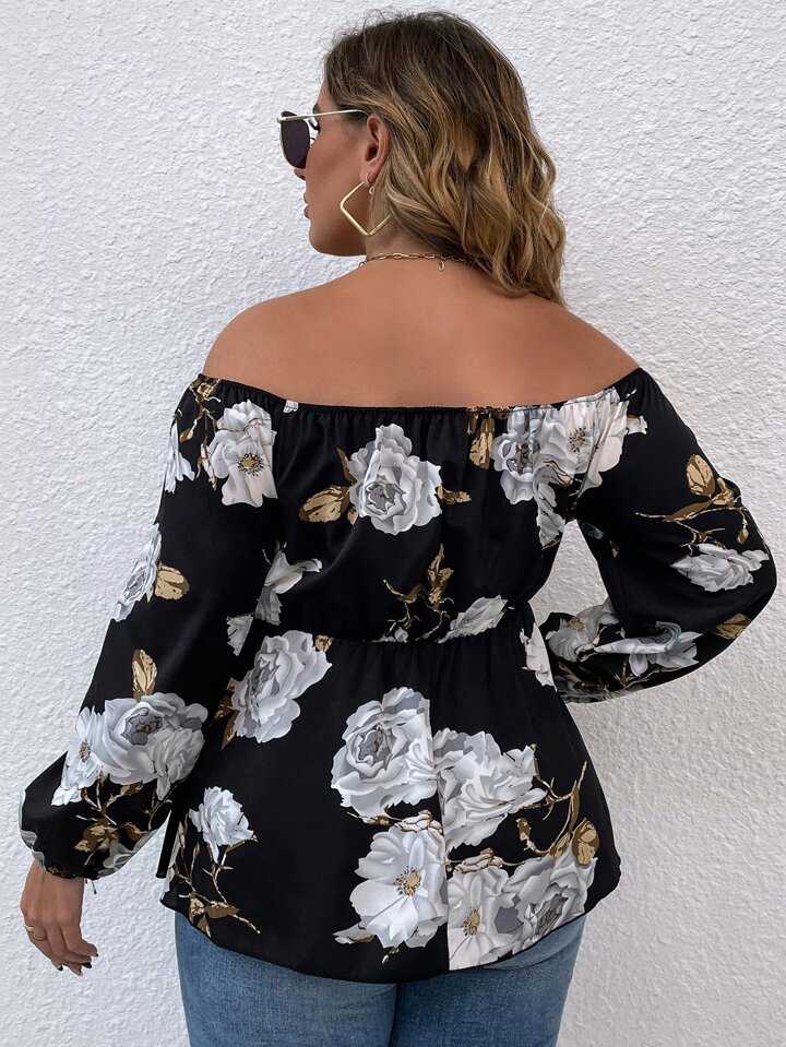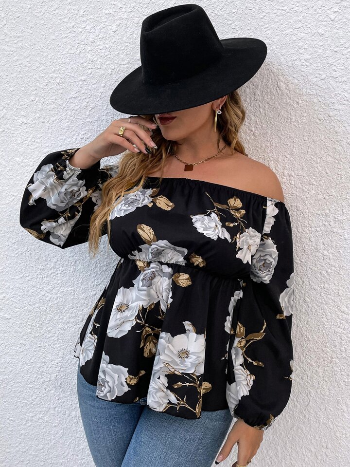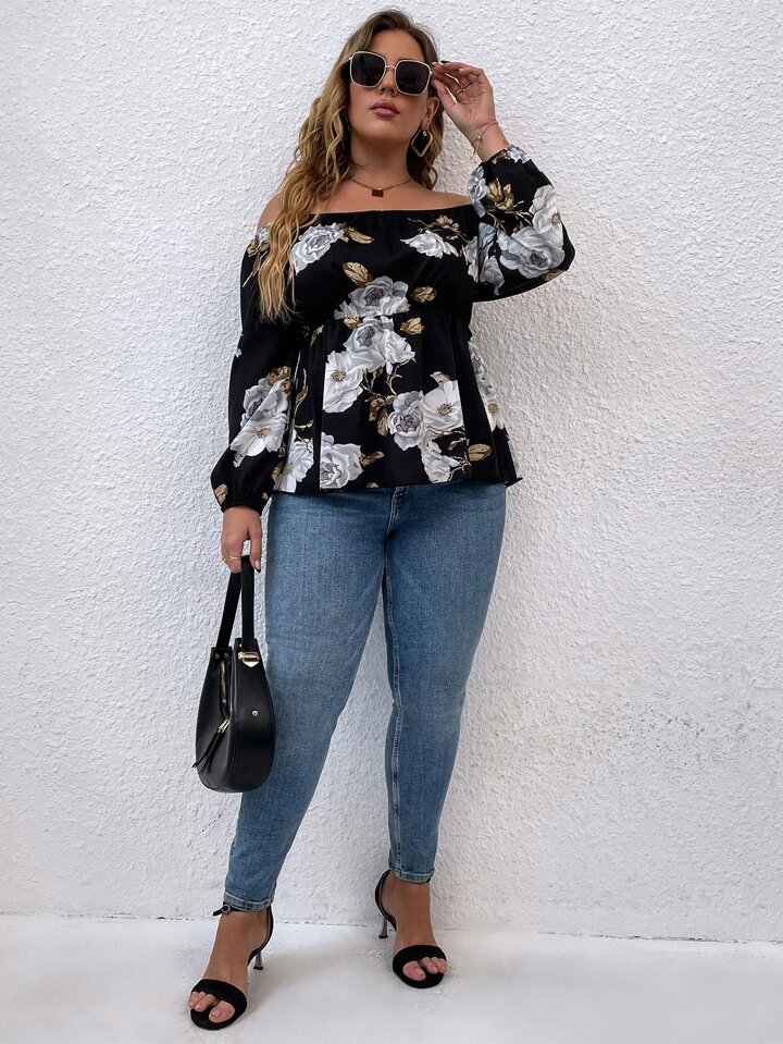 Plus Floral Print Off Shoulder Lantern Sleeve Blouse