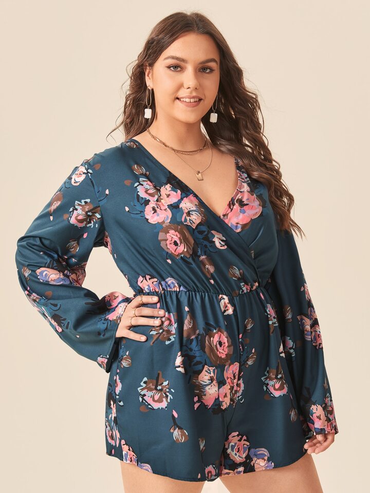 Plus Floral Print Wrap Romper