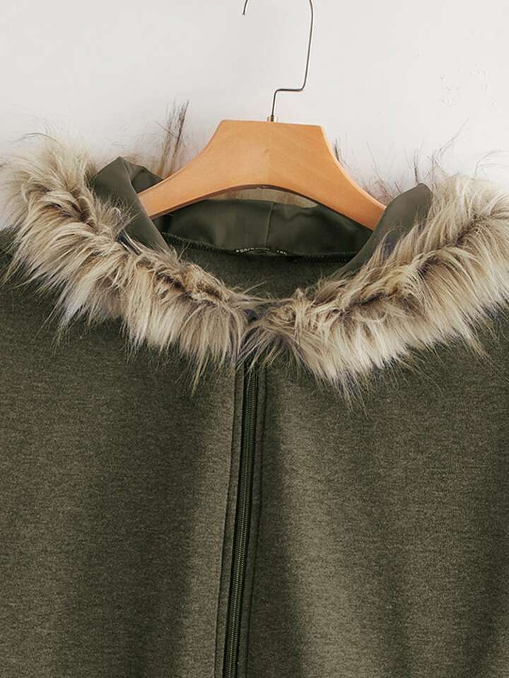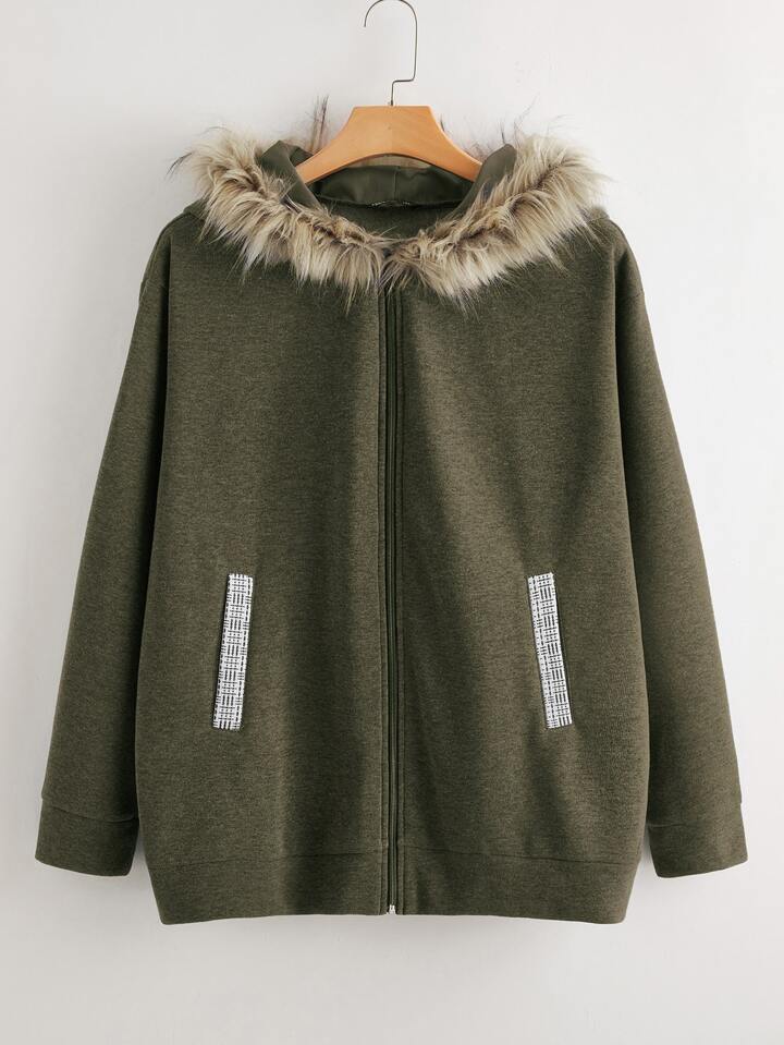 Plus Fuzzy Hooded Zip Up Jacket