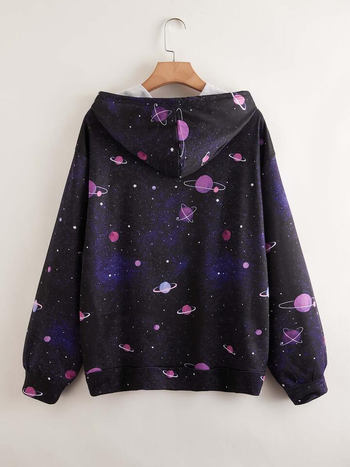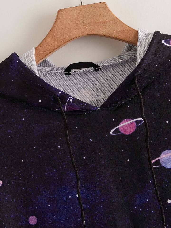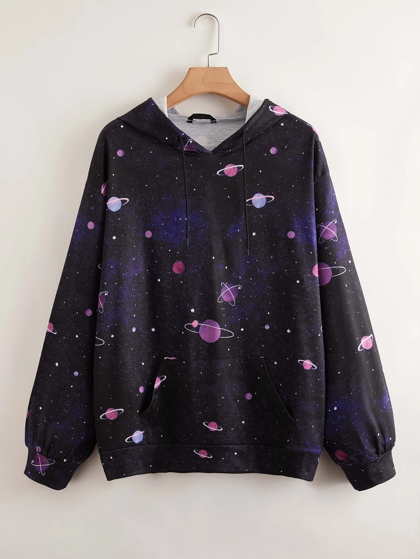 Plus Galaxy Print Drawstring Hooded Sweatshirt