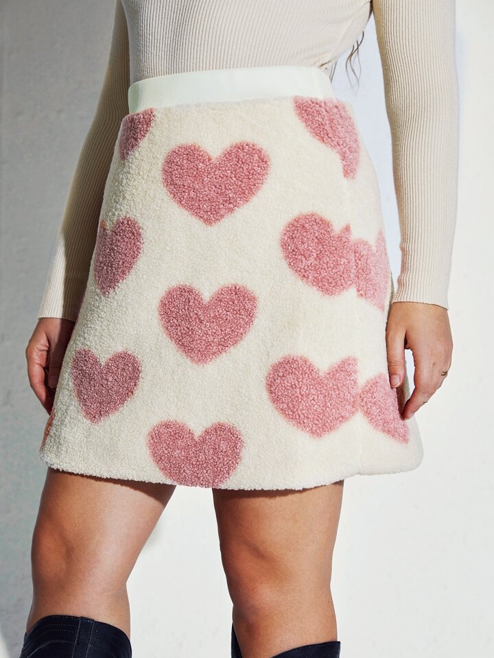Plus Heart Pattern Fuzzy Skirt