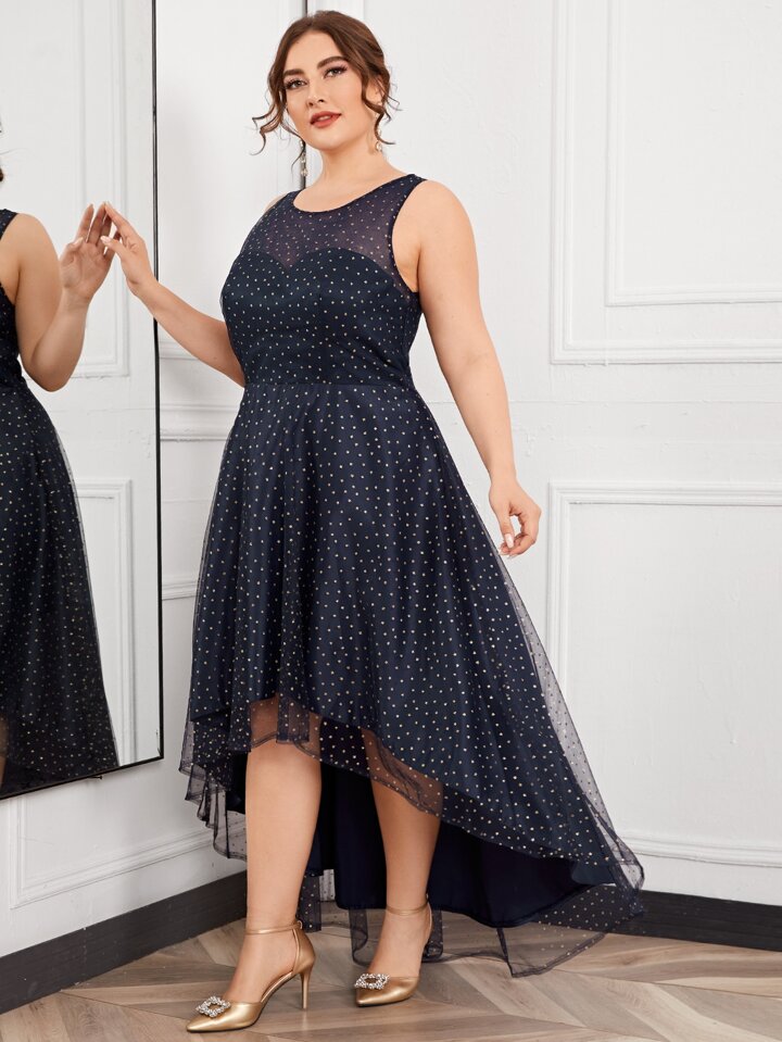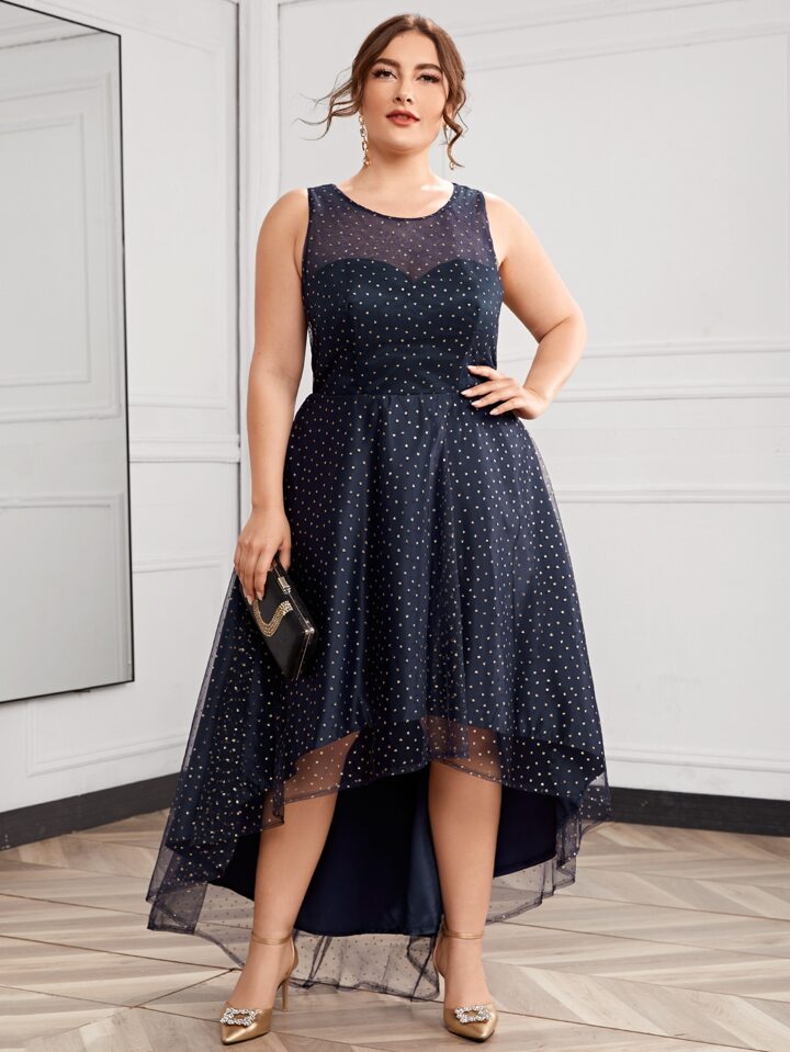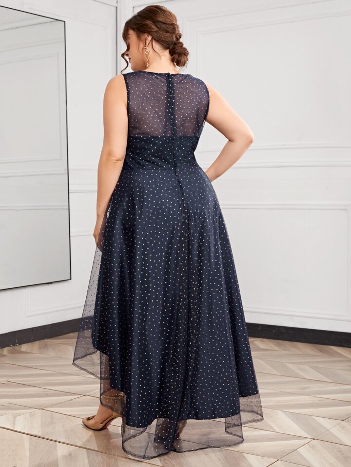 Plus High Low Galaxy Mesh Overlay Prom Dress