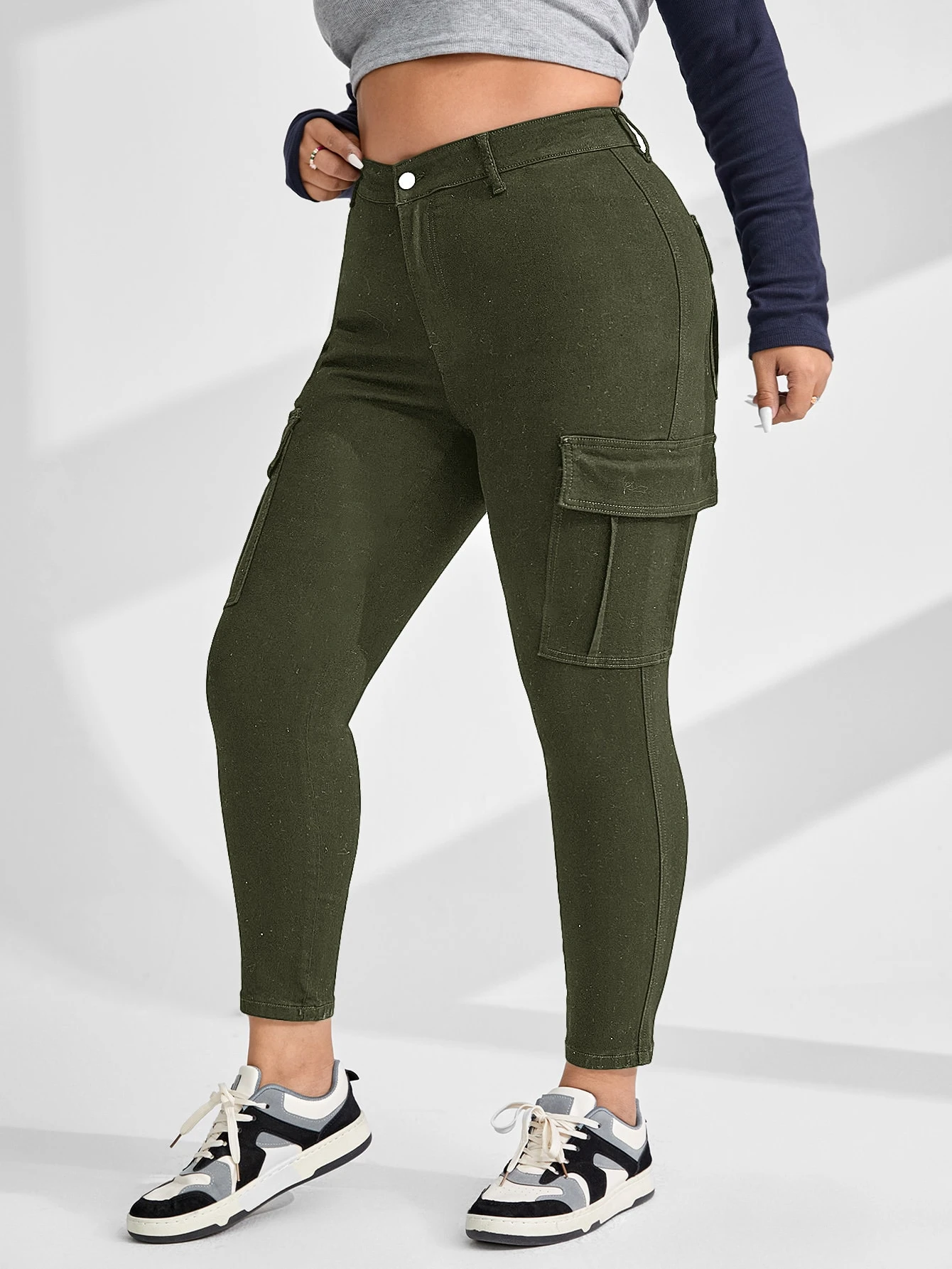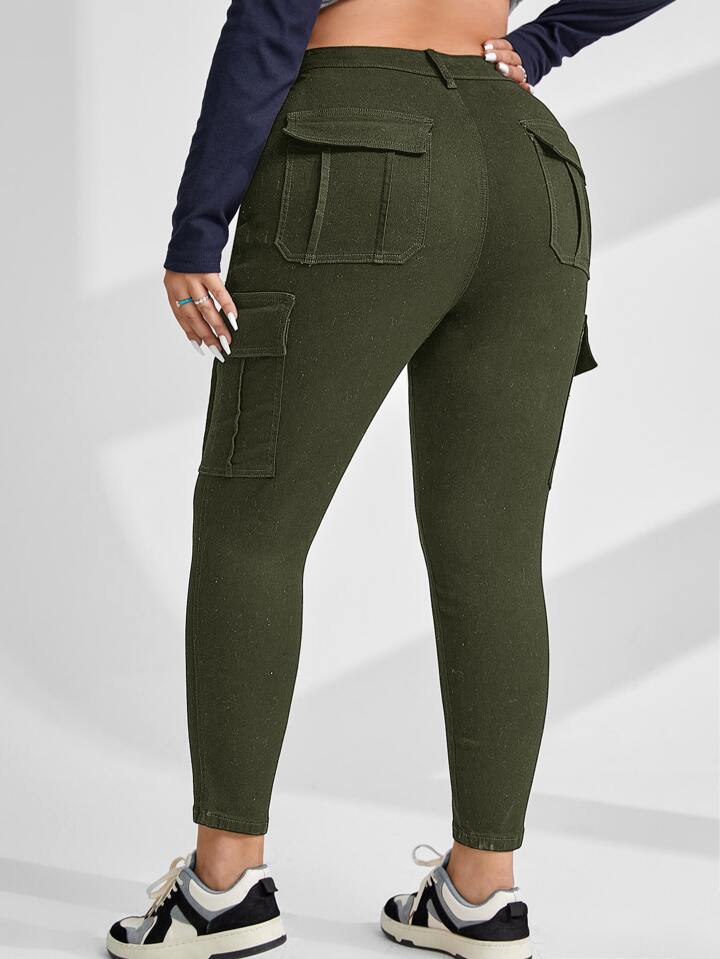 Plus High Waist Flap Pocket Side Cargo Jeans