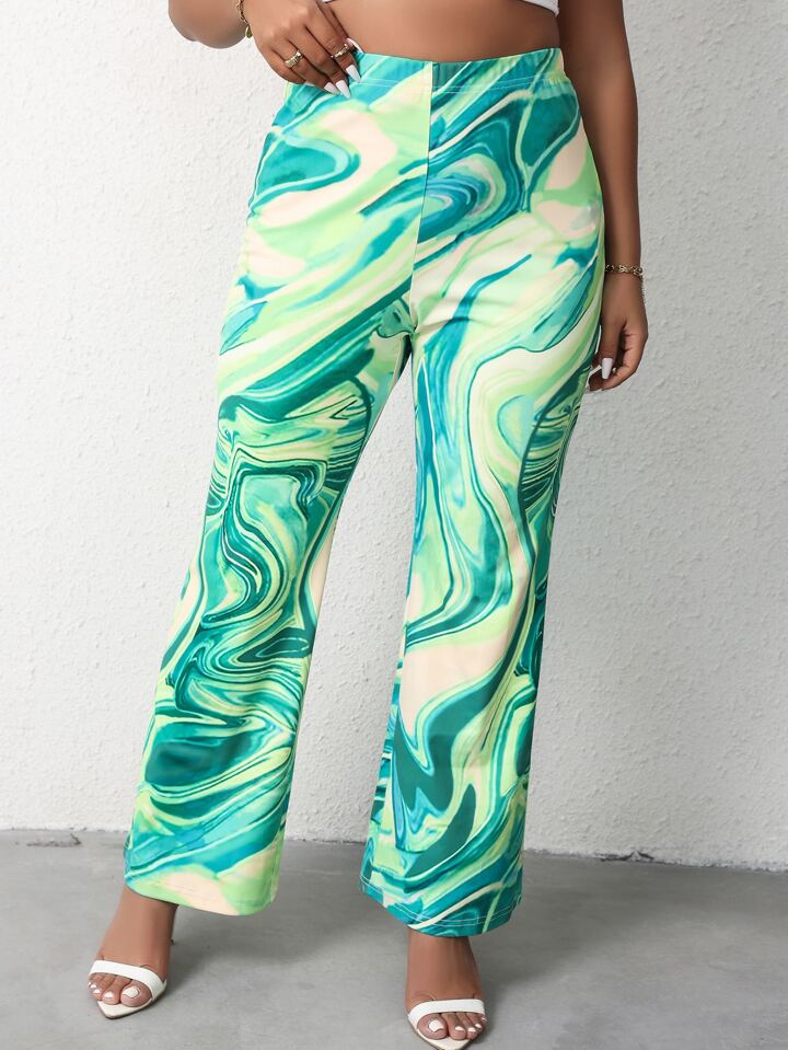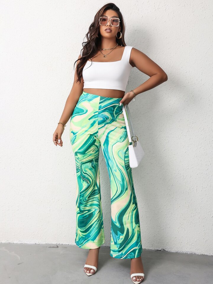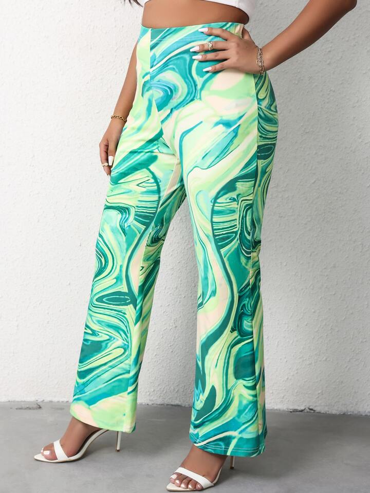 Plus High Waist Marble Print Flare Leg Pants