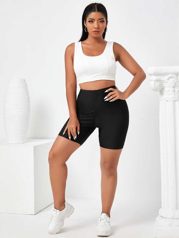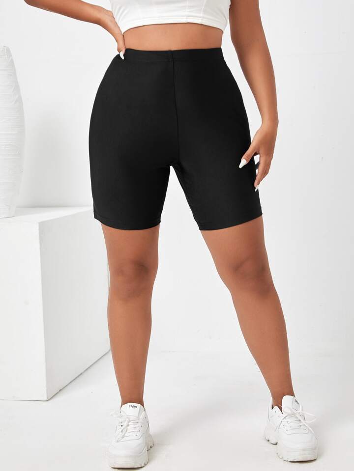 Plus High Waist Solid Biker Shorts