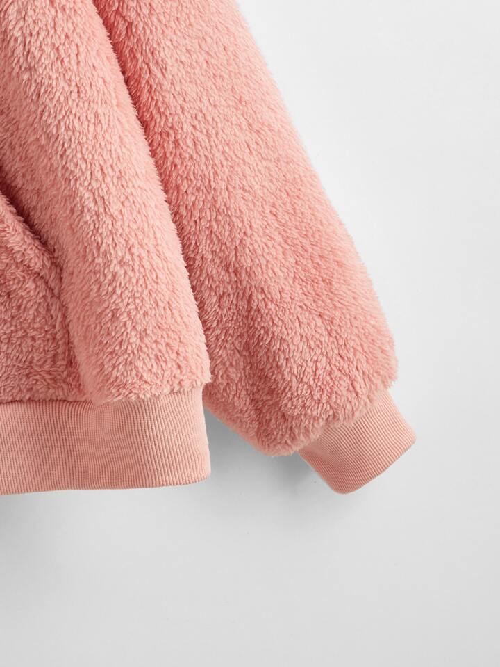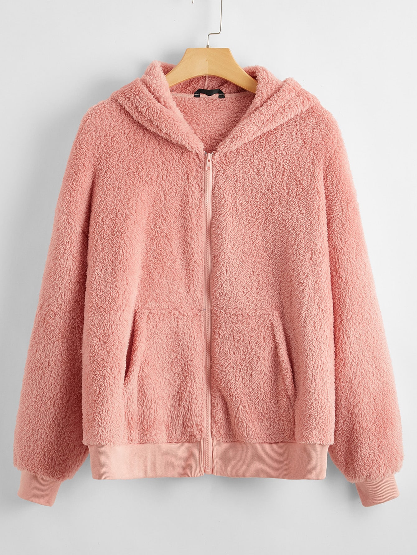 Plus Kangaroo Pocket Zip Up Hooded Teddy Jacket