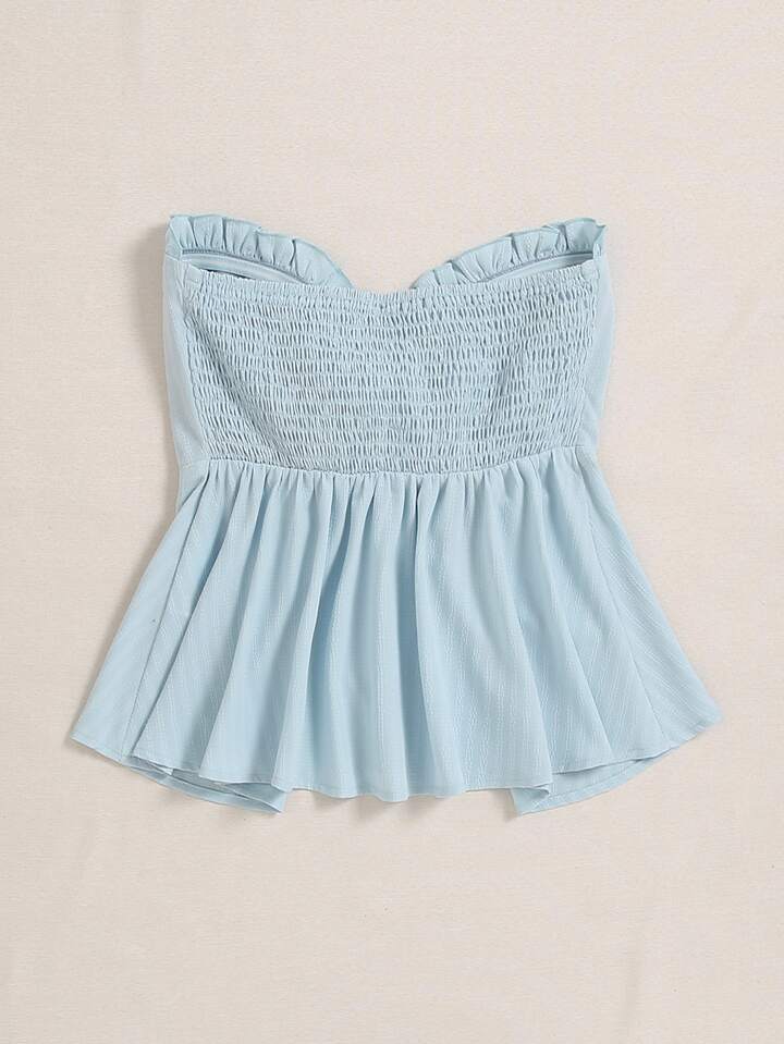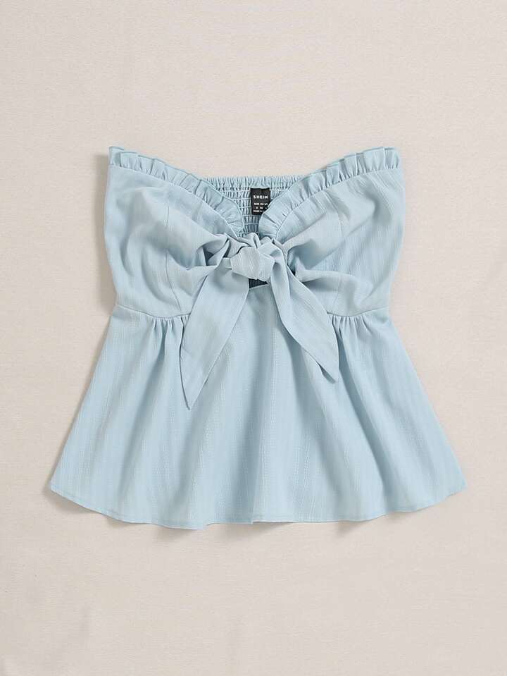 Plus Knot Bust Shirred Back Peplum Tube Top