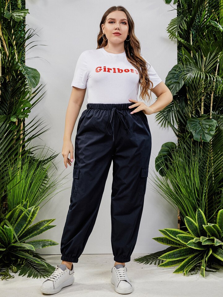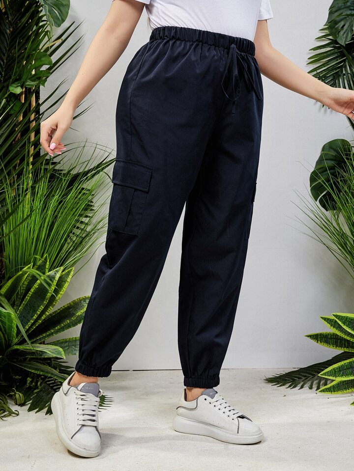 Plus Knot Front Flap Pocket Side Cargo Pants
