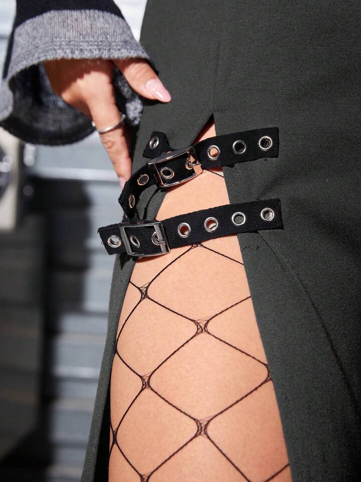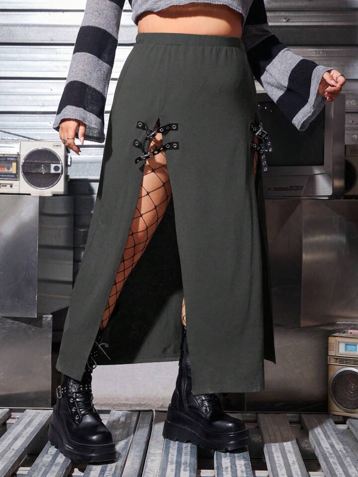 Plus Lace Up Front Split Thigh Skirt
