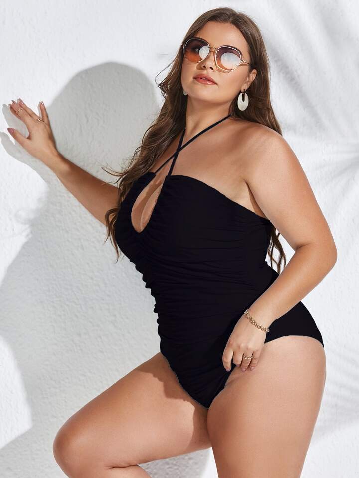 Plus Lace Up One Piece Swimsuit