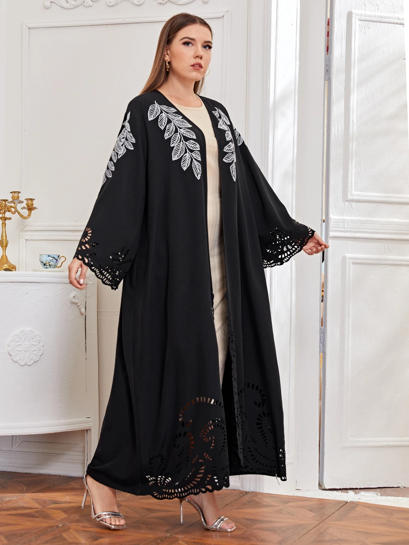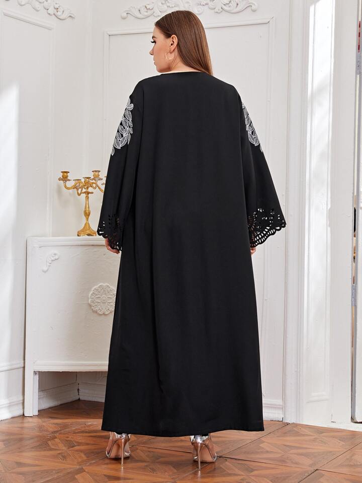 Plus Leaf Embroidery Laser Cut Kimono