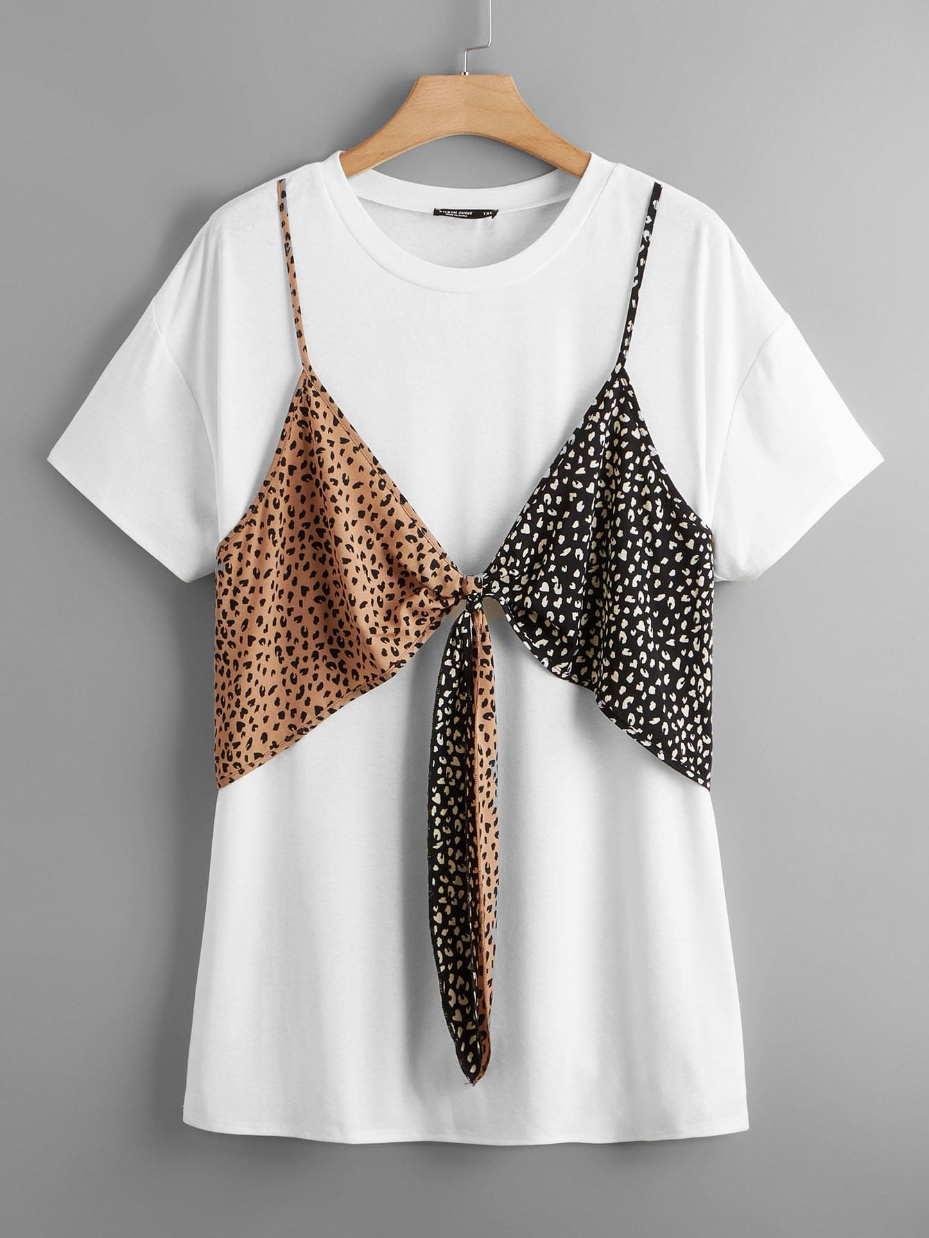 Plus Leopard Print Knot Front 2 in 1 Tee