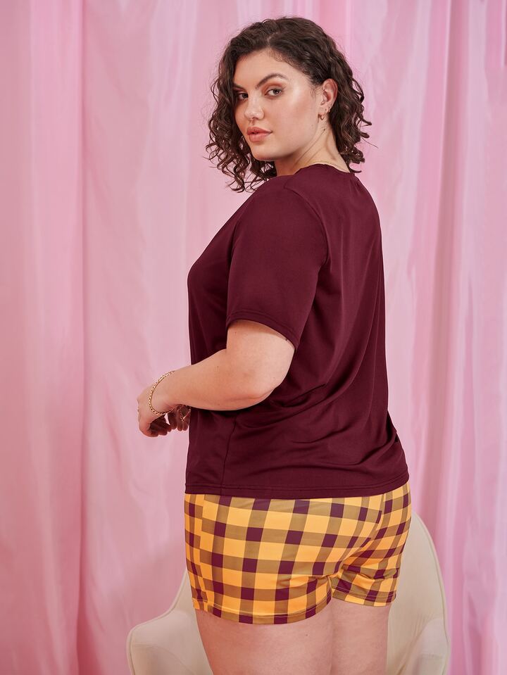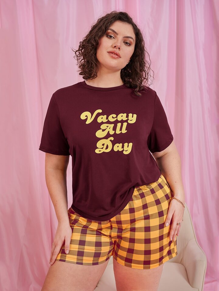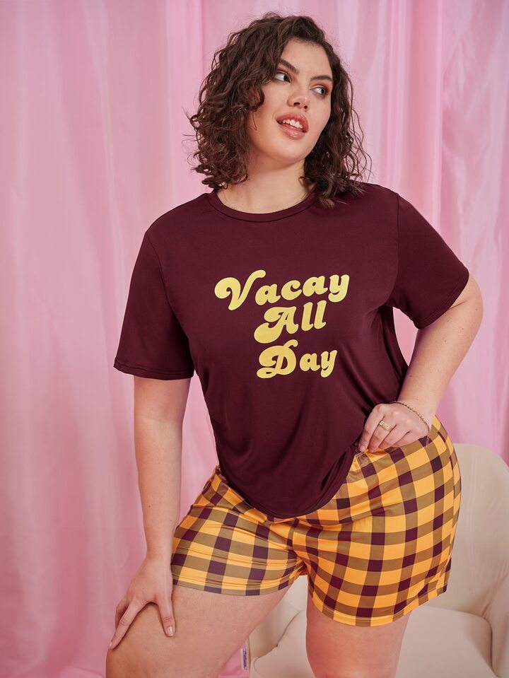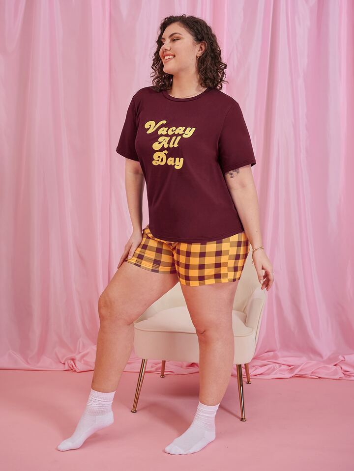 Plus Letter & Gingham Pajama Set