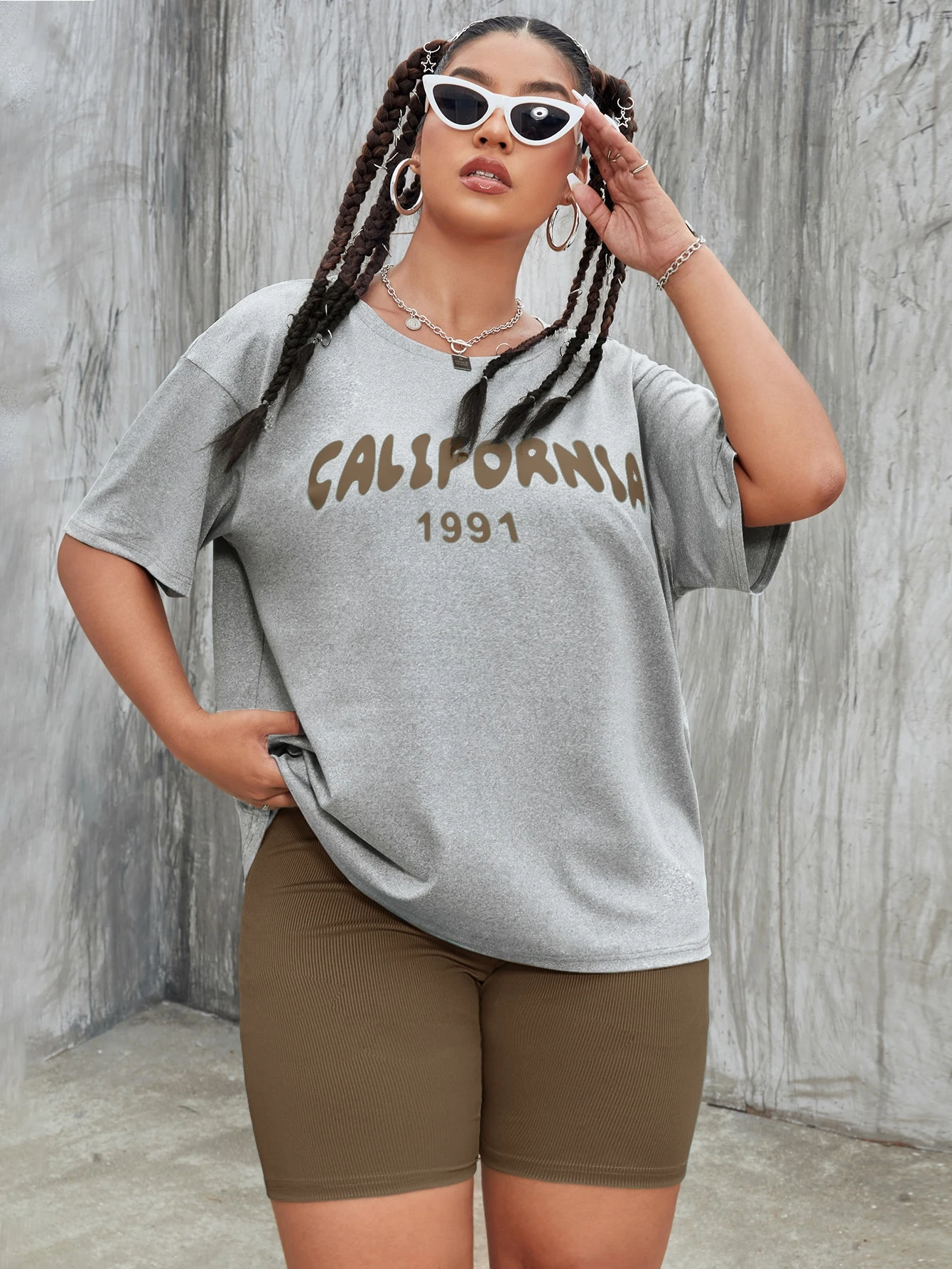 Plus Letter Graphic Drop Shoulder Tee & Biker Shorts