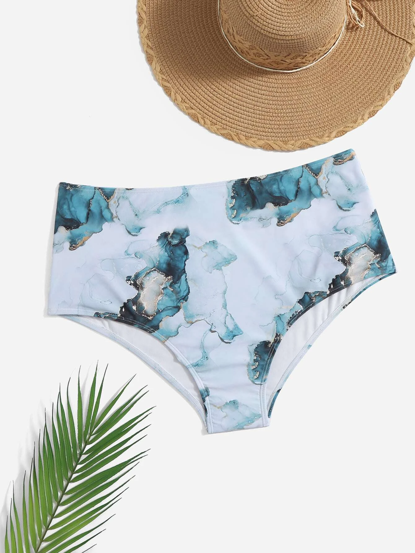 Plus Marble Print Bikini Bottom, For Summer Beach Vacation