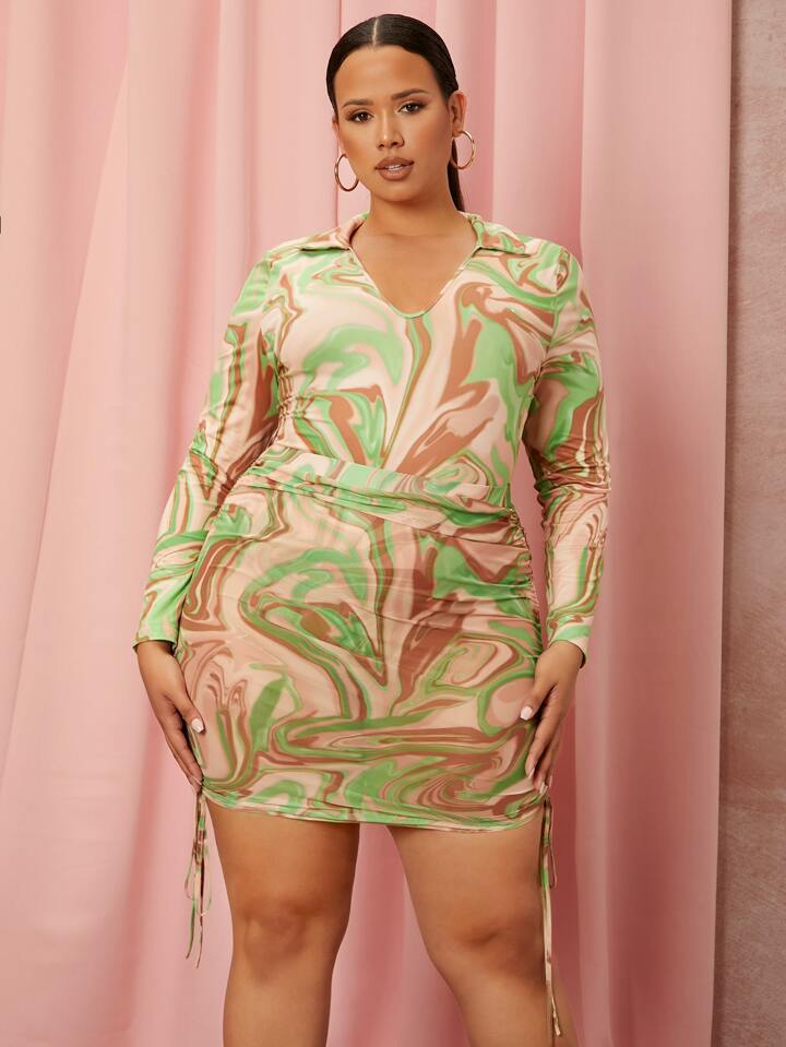 Plus Marble Print Mesh Bodysuit