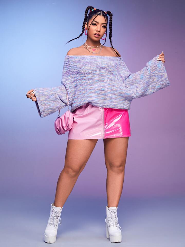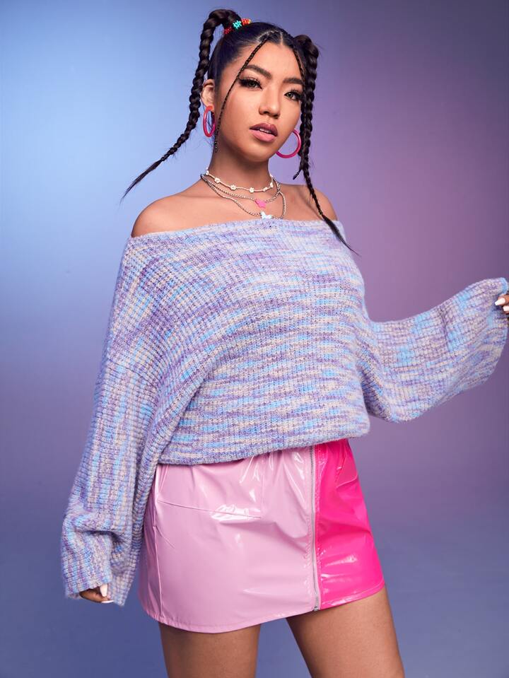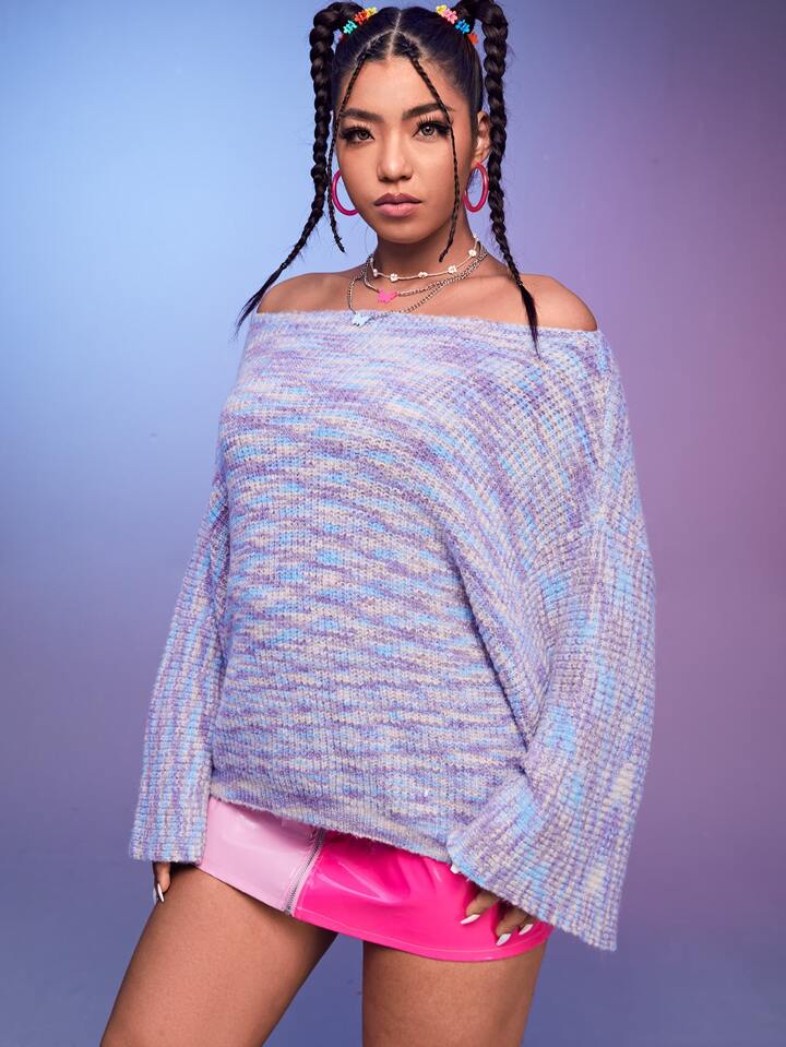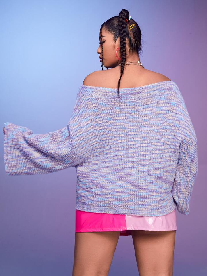 Plus Off Shoulder Space Dye Drop Shoulder Sweater
