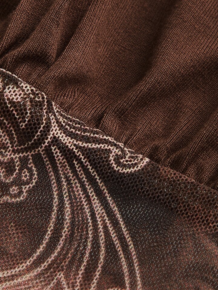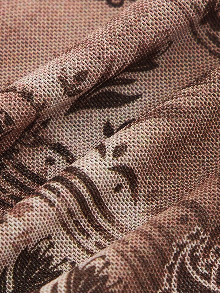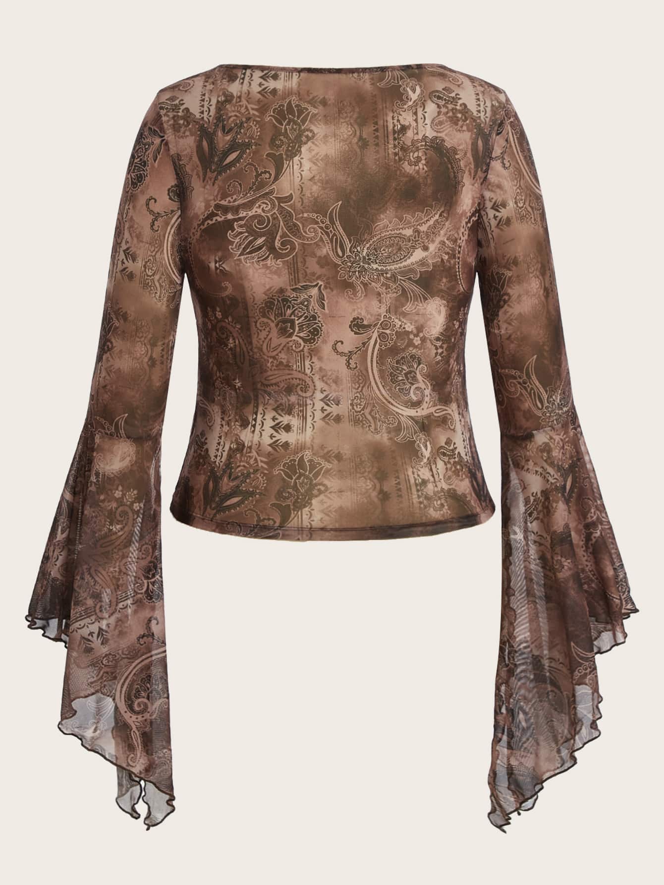 Plus Paisley Print Knot Front Flounce Sleeve Mesh Top