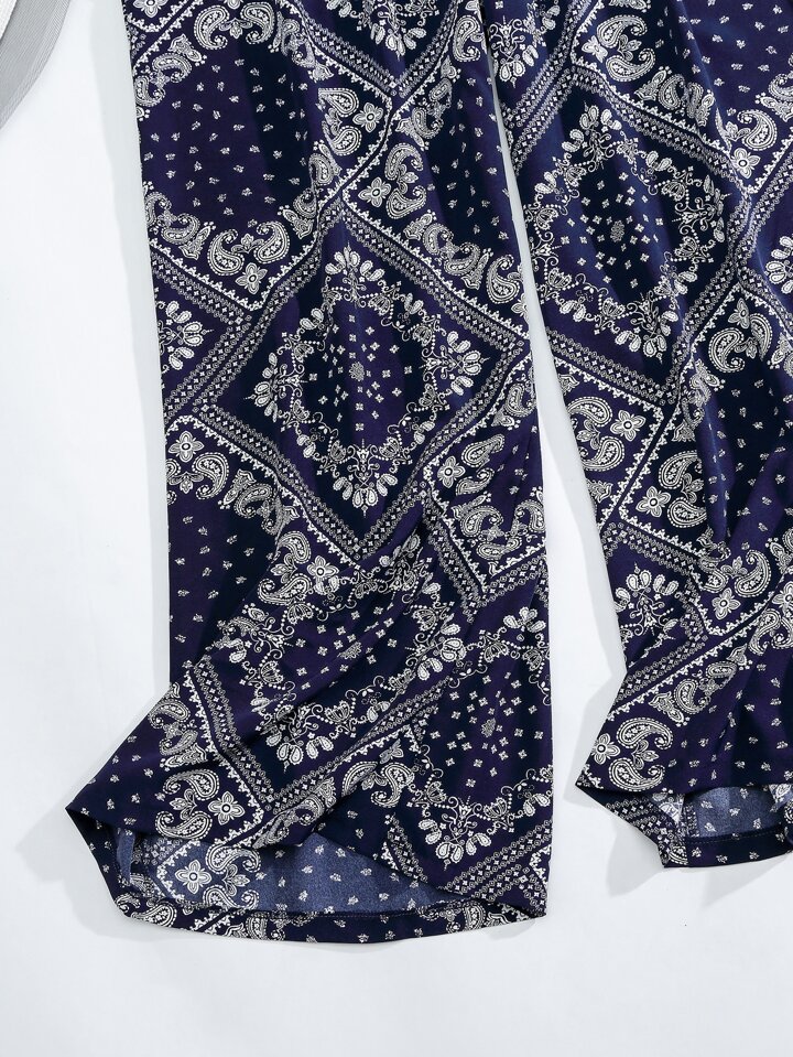 Plus Paisley Scarf Print Wide Leg Pants Fall Cloth For Women