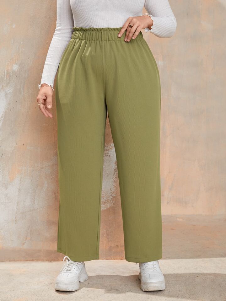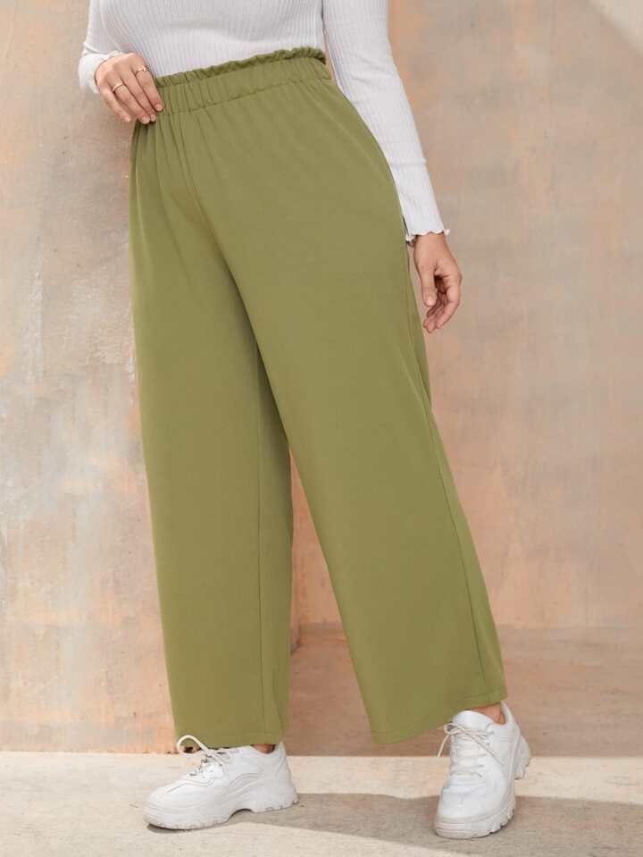 Plus Paper Bag Waist Wide Leg Pants