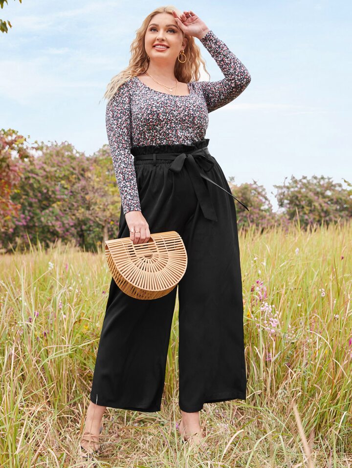 Plus Paperbag Waist Wide Leg Pants