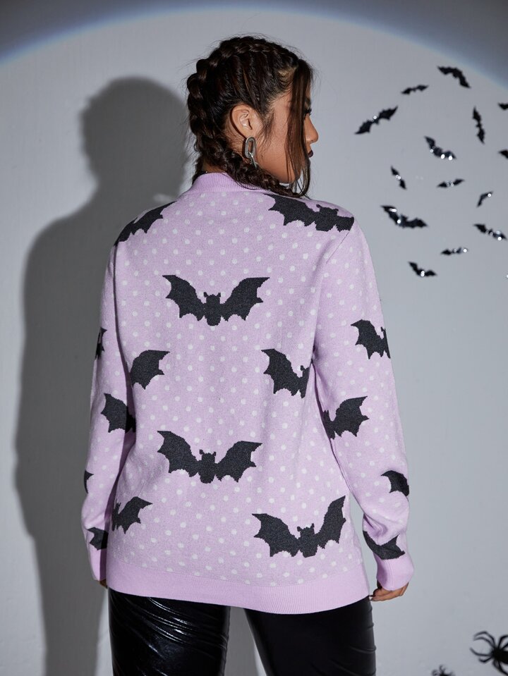Plus Polka Dot & Halloween Bat Pattern Sweater