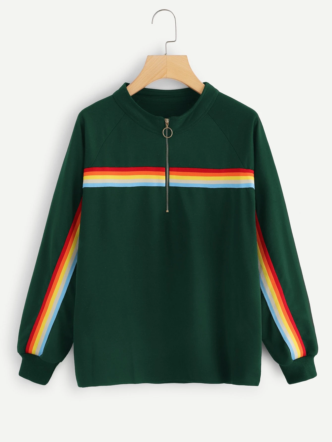 Plus Quarter Zip Rainbow Striped Sweatshirt