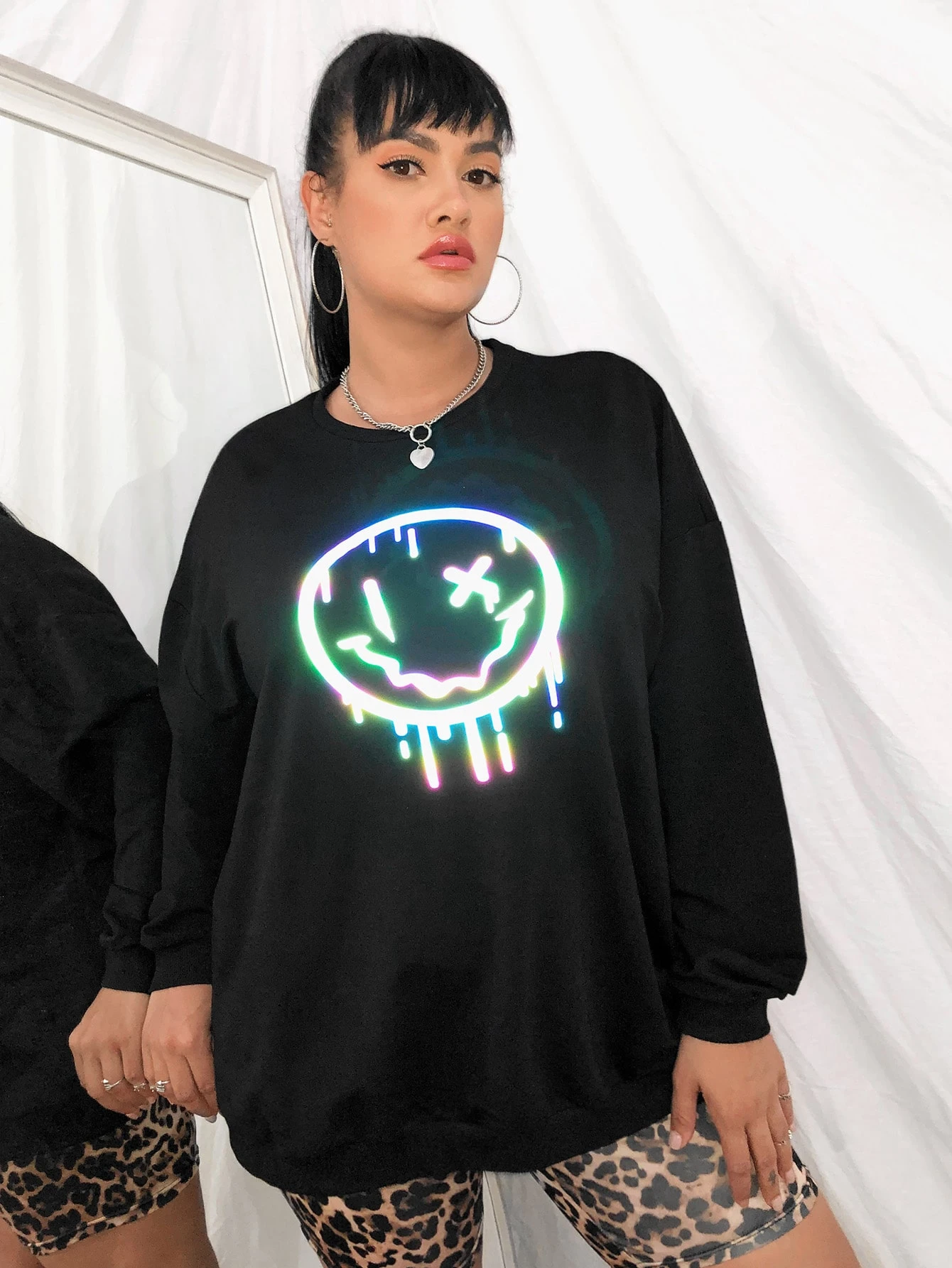 Plus Reflective Expression Print Drop Shoulder Sweatshirt Graduation,Back To School Outfits,Graduation,Teacher Outfits For Women,Back To School