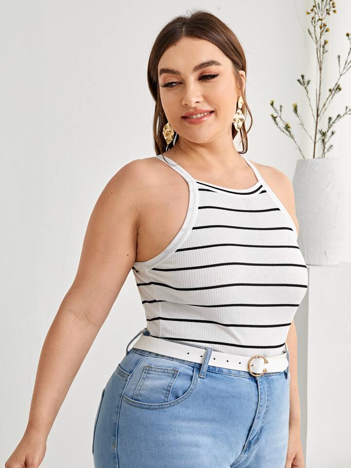 Plus Rib-Knit Striped Halter Top, Summer