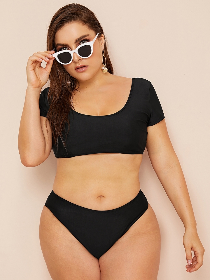 Plus Scoop Neck Top With Panty Two Piece Swimwear