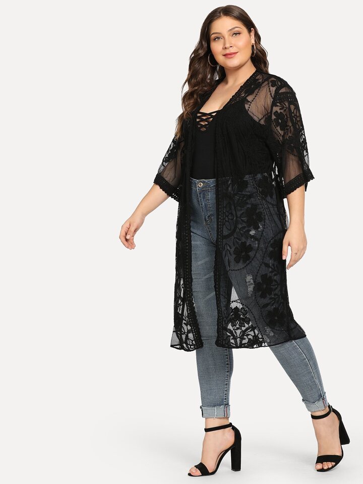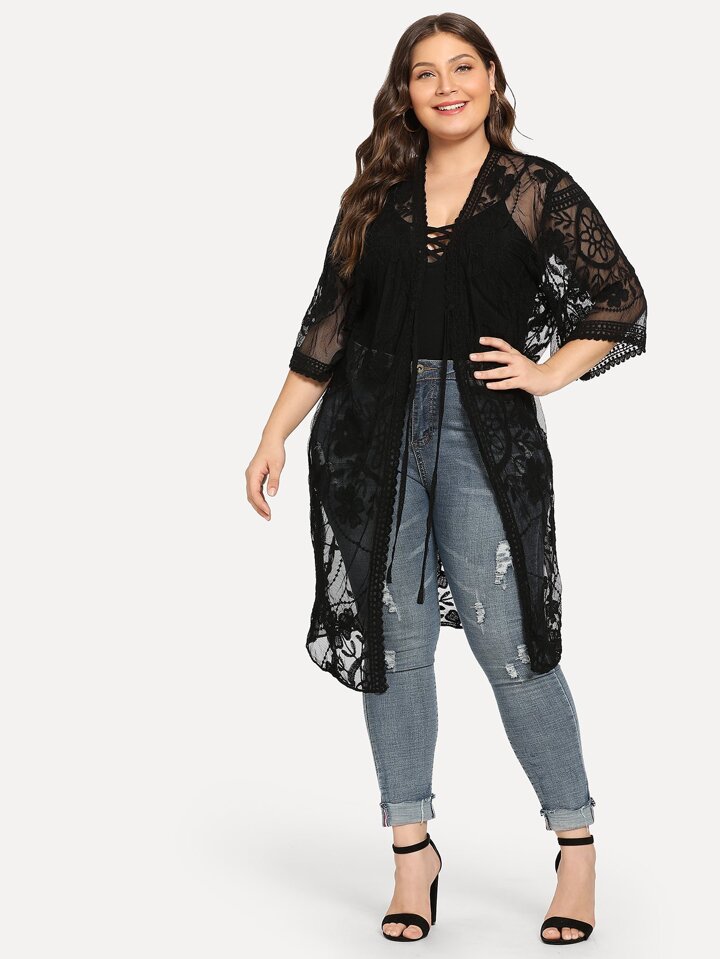 Plus Sheer Lace Kimono