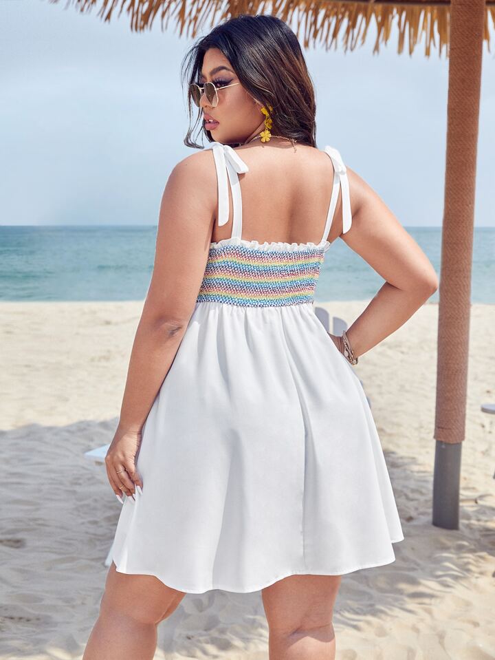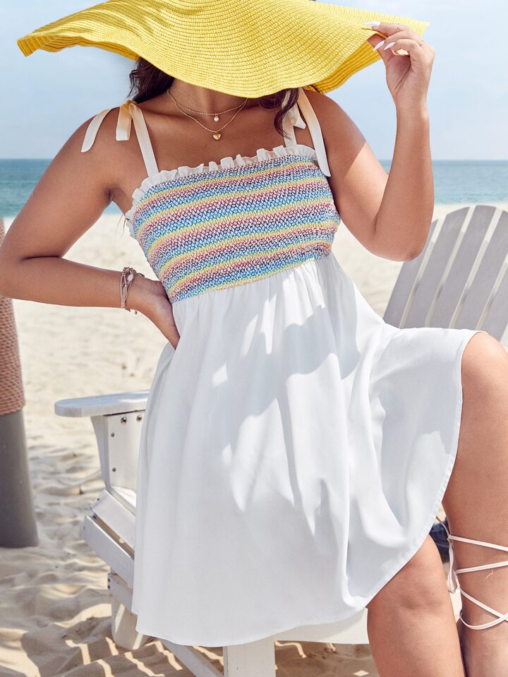 Plus Shirred Frill Trim Tie Shoulder Cami Dress