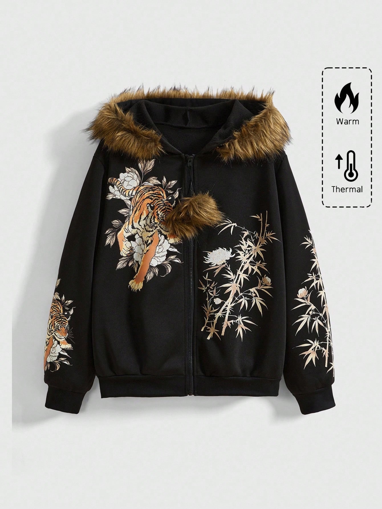 Fairycore Plus Size Bamboo Forest Tiger Rhinestone Embellished Sweatshirt