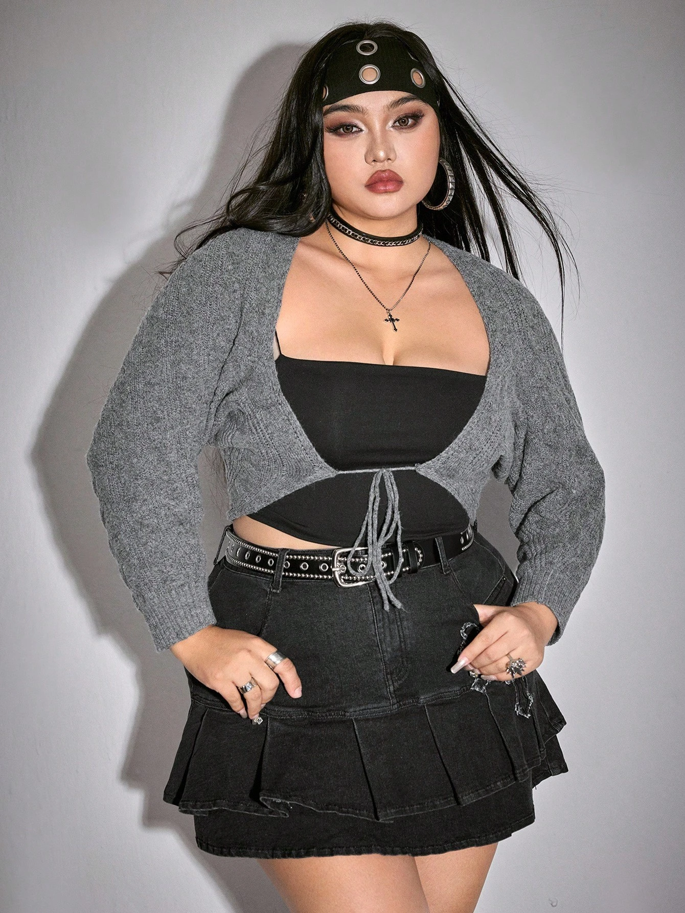 Plus Size Casual Versatile Slimming Cropped Knit Cardigan, Autumn/Winter