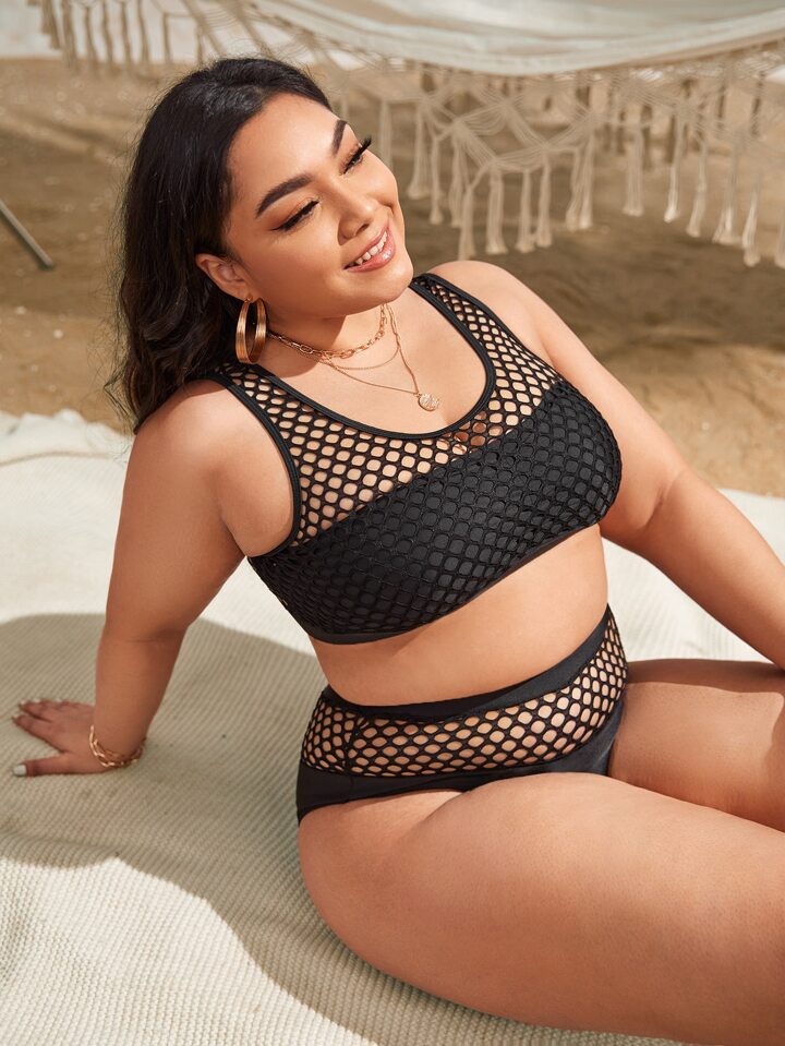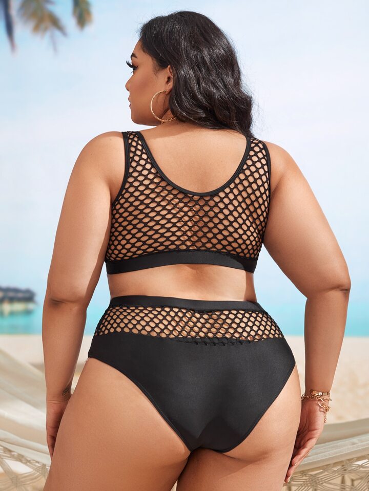 Plus Size Contrast Fishnet Bikini Set Summer Beach