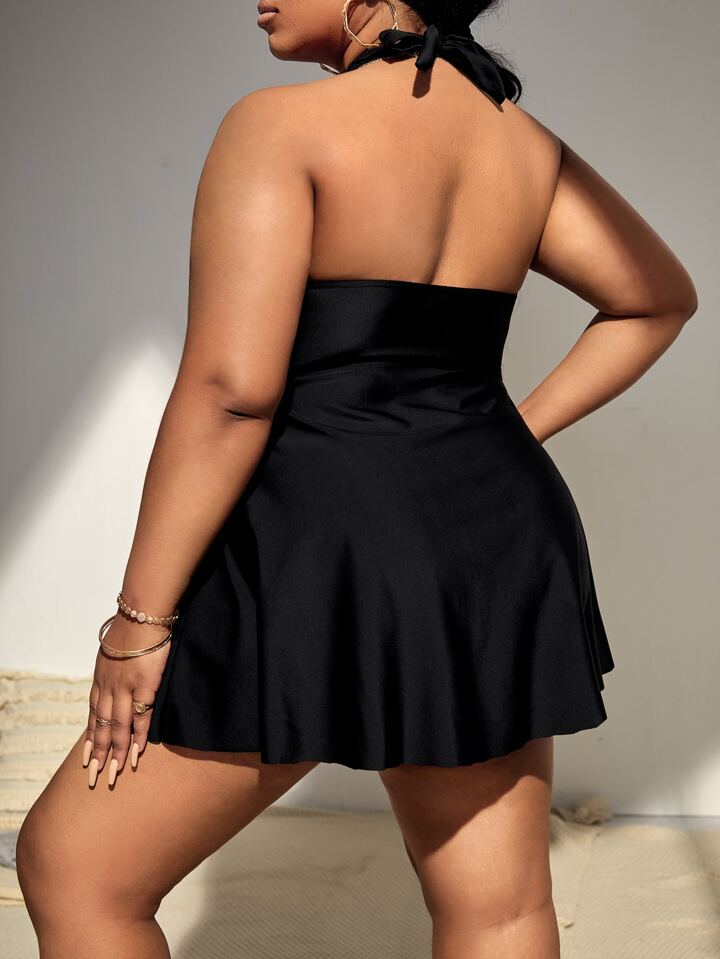 Plus Size Cut Out Tie Back Halter Swim Dress Summer Beach