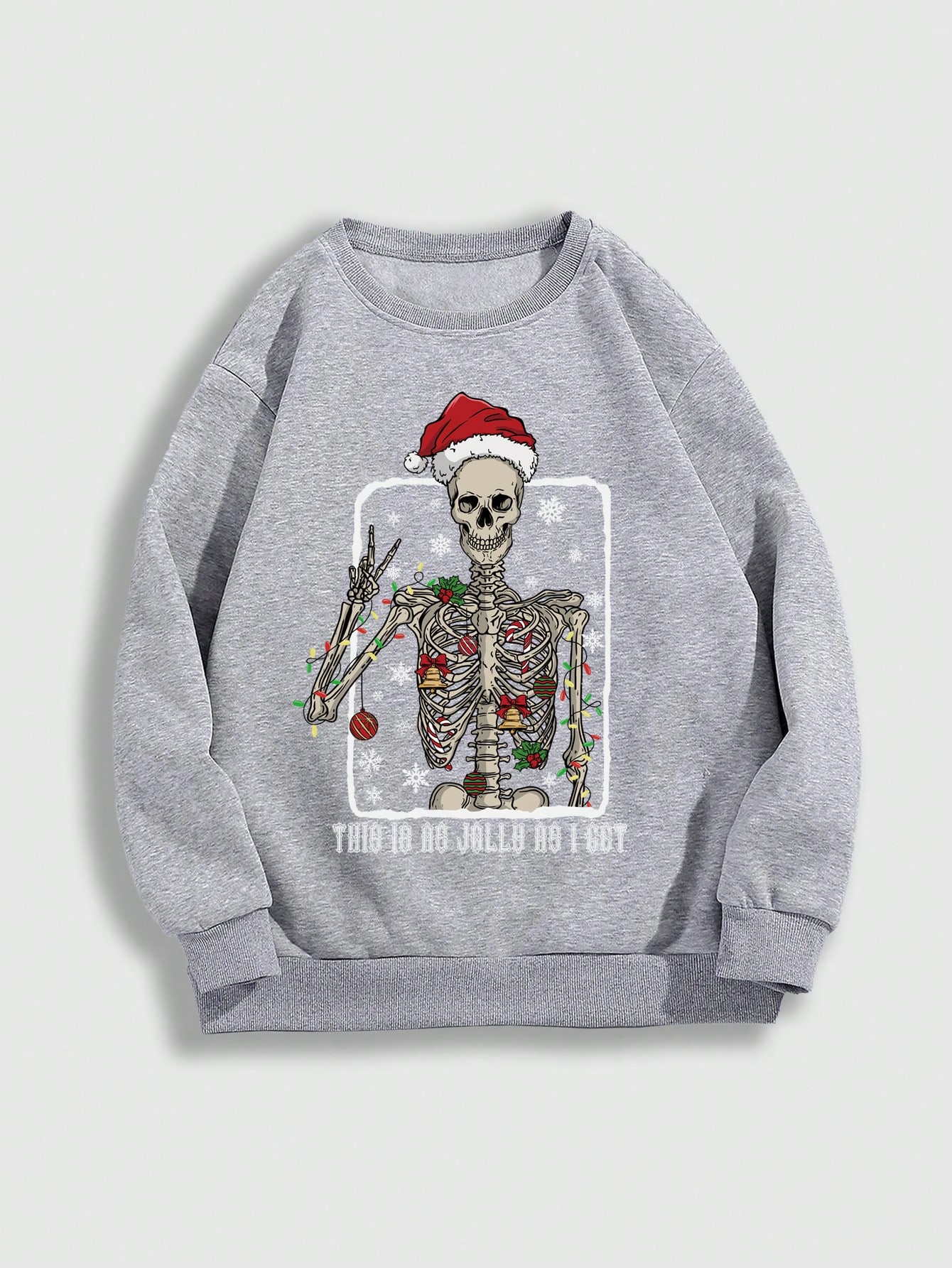 Goth Plus Size Dark Gray Christmas Skeleton Pattern Fleece Sweatshirt