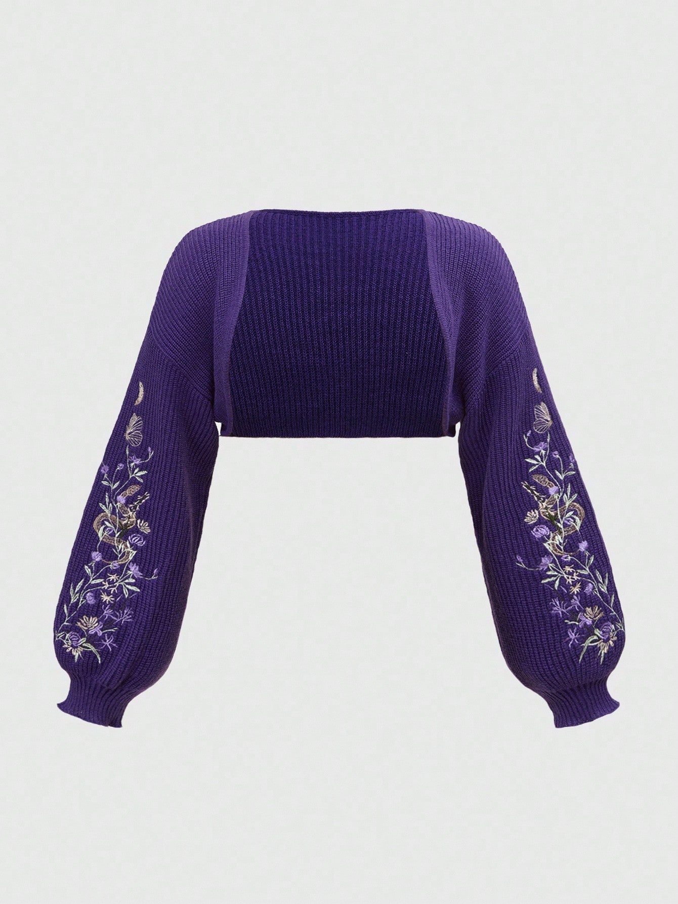 Plus Size Gothic Botanical Snake Embroidery Cropped Cardigan